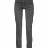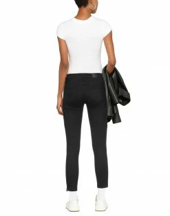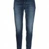 denim, colored wash, brand logo, high waisted, solid color, slim-leg pants, tapered leg, zipper closure, 1 button, multipockets, zips at hem, stretch