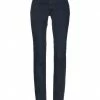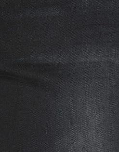 denim, faded, leather applications, logo, solid color, colored wash, mid rise, front closure, button, zip, multipockets, contains non-textile parts of animal origin, slim fit