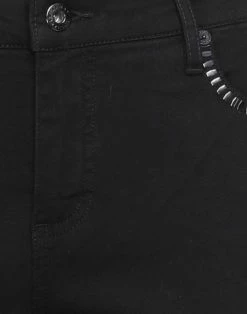denim, metal applications, logo, solid color, colored wash, mid rise, front closure, button, zip, multipockets, stretch