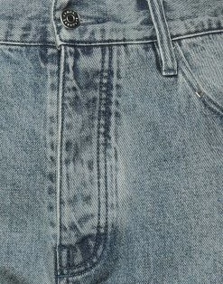 denim, faded, studs, print, solid colour with appliqués, dark wash, high waisted, belt loops, button closing, no pockets, raw-cut hem