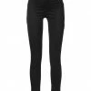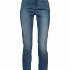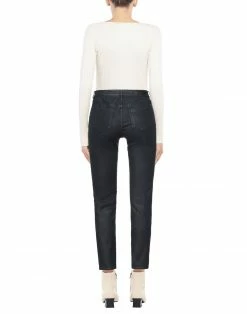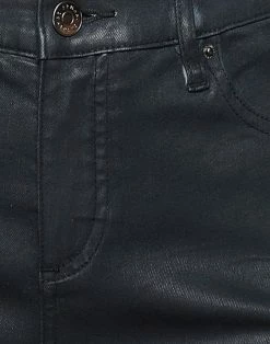denim, logo, leather applications, solid color, colored wash, mid rise, front closure, button, zip, multipockets, stretch, contains non-textile parts of animal origin