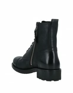 brand logo, solid color, fabric inner, zipper closure, laces, round toeline, square heel, rubber cleated sole, contains non-textile parts of animal origin