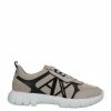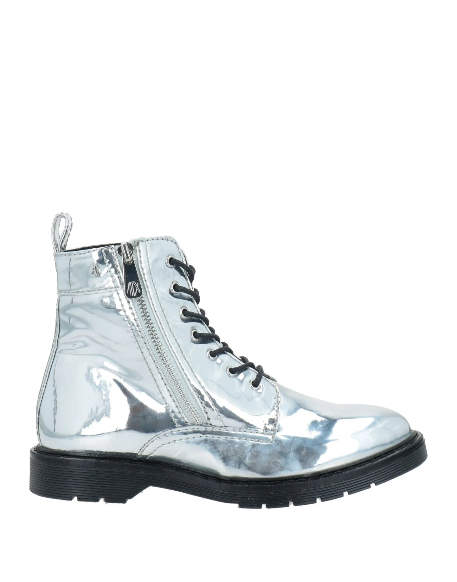 coated fabric, laminated effect, brand logo, solid color, unlined, laces, zipper closure, round toeline, flat, lug sole