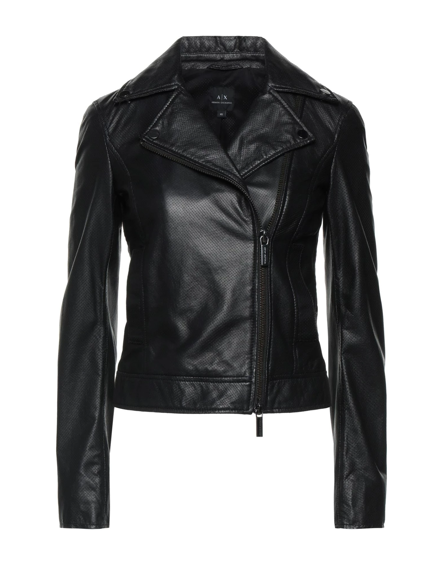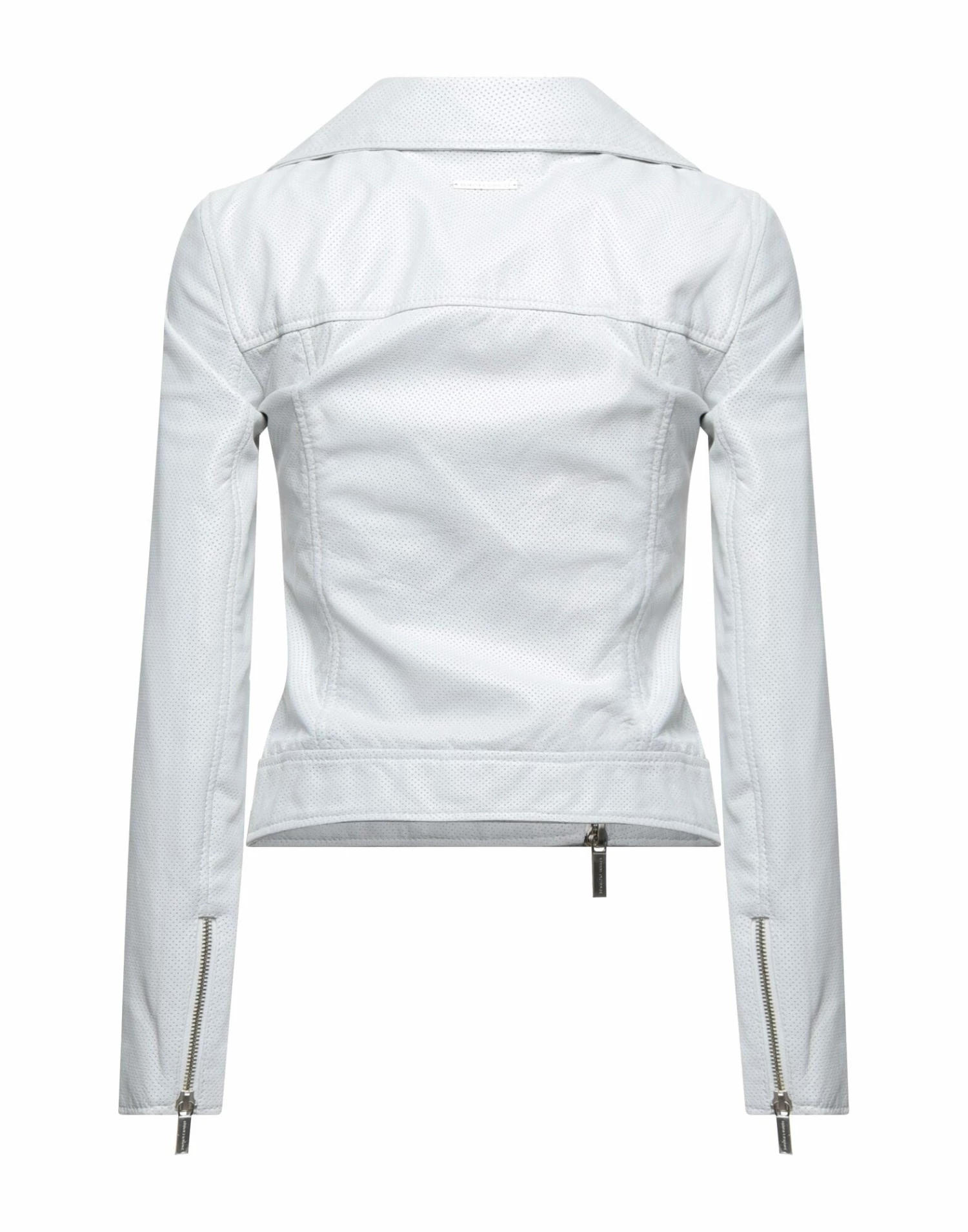 openwork, leather, logo, solid color, single-breasted , zipper closure, lapel collar, multipockets, long sleeves, fully lined, contains non-textile parts of animal origin