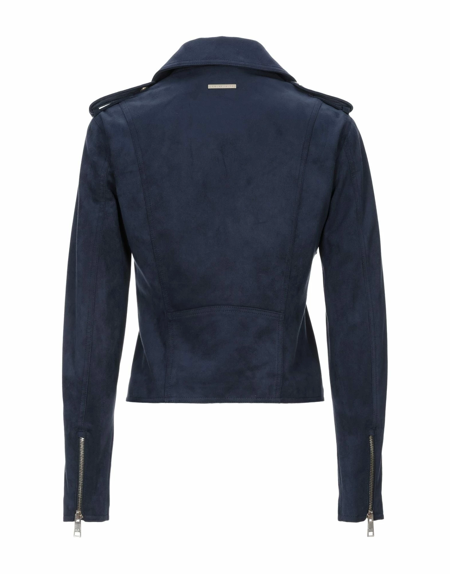 synthetic fibre, logo, suede effect, basic solid color, single-breasted , zipper closure, lapel collar, multipockets, long sleeves, fully lined, stretch