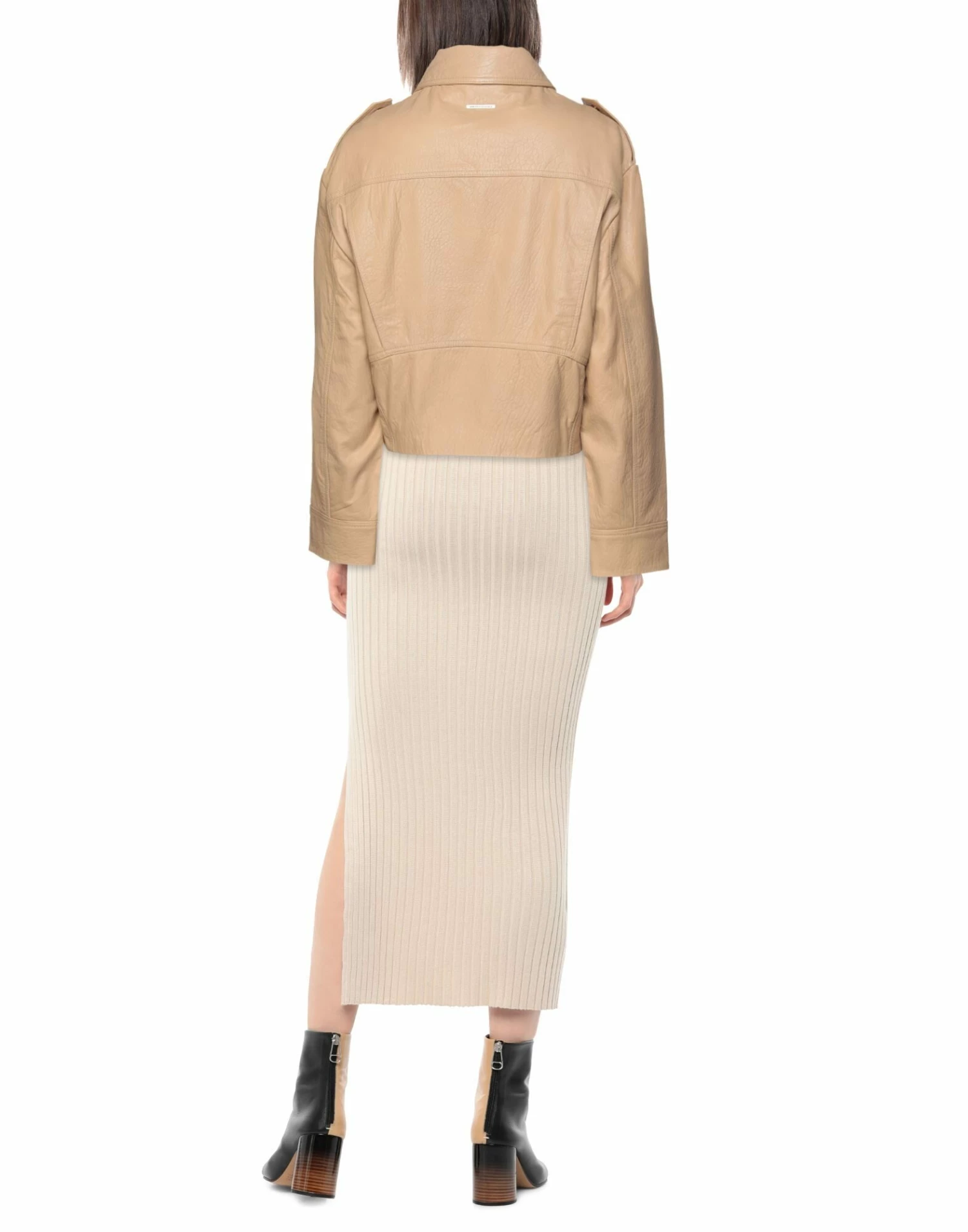 leather, textured leather, flashes, brand logo, solid color, single-breasted , classic neckline, long sleeves, multipockets, fully lined, contains non-textile parts of animal origin
