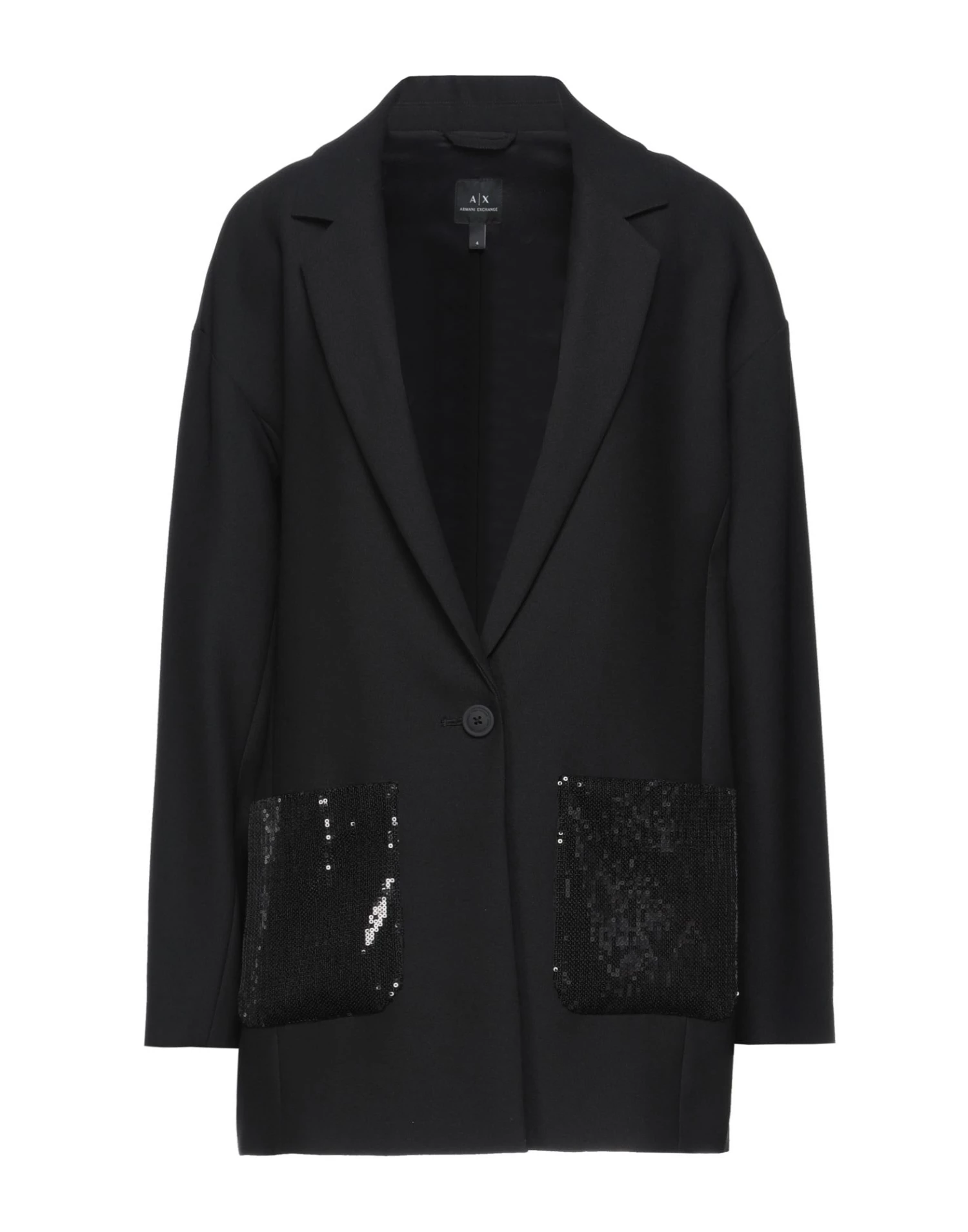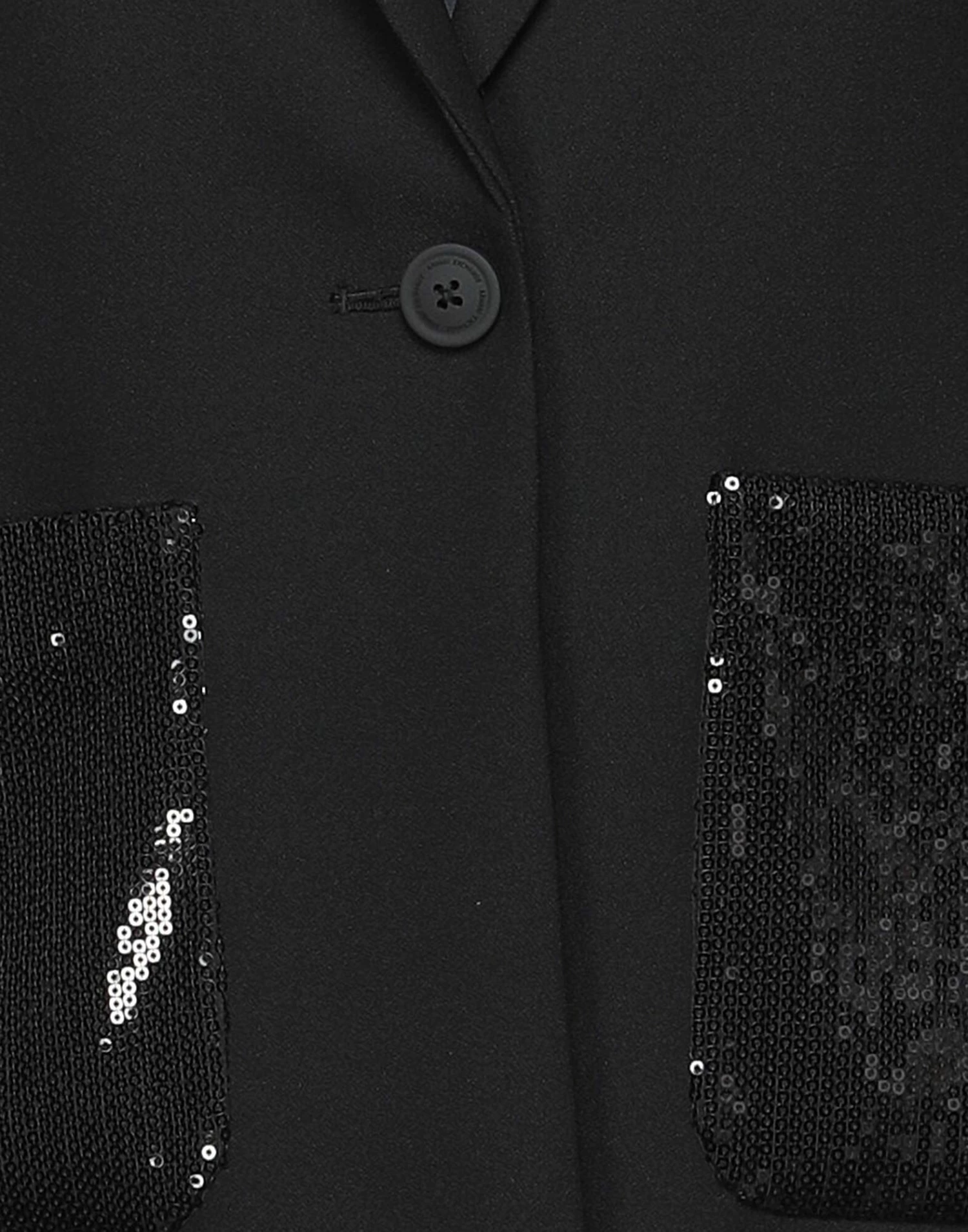crepe, sequins, solid color, lapel collar, single-breasted , long sleeves, fully lined, button closing, multipockets