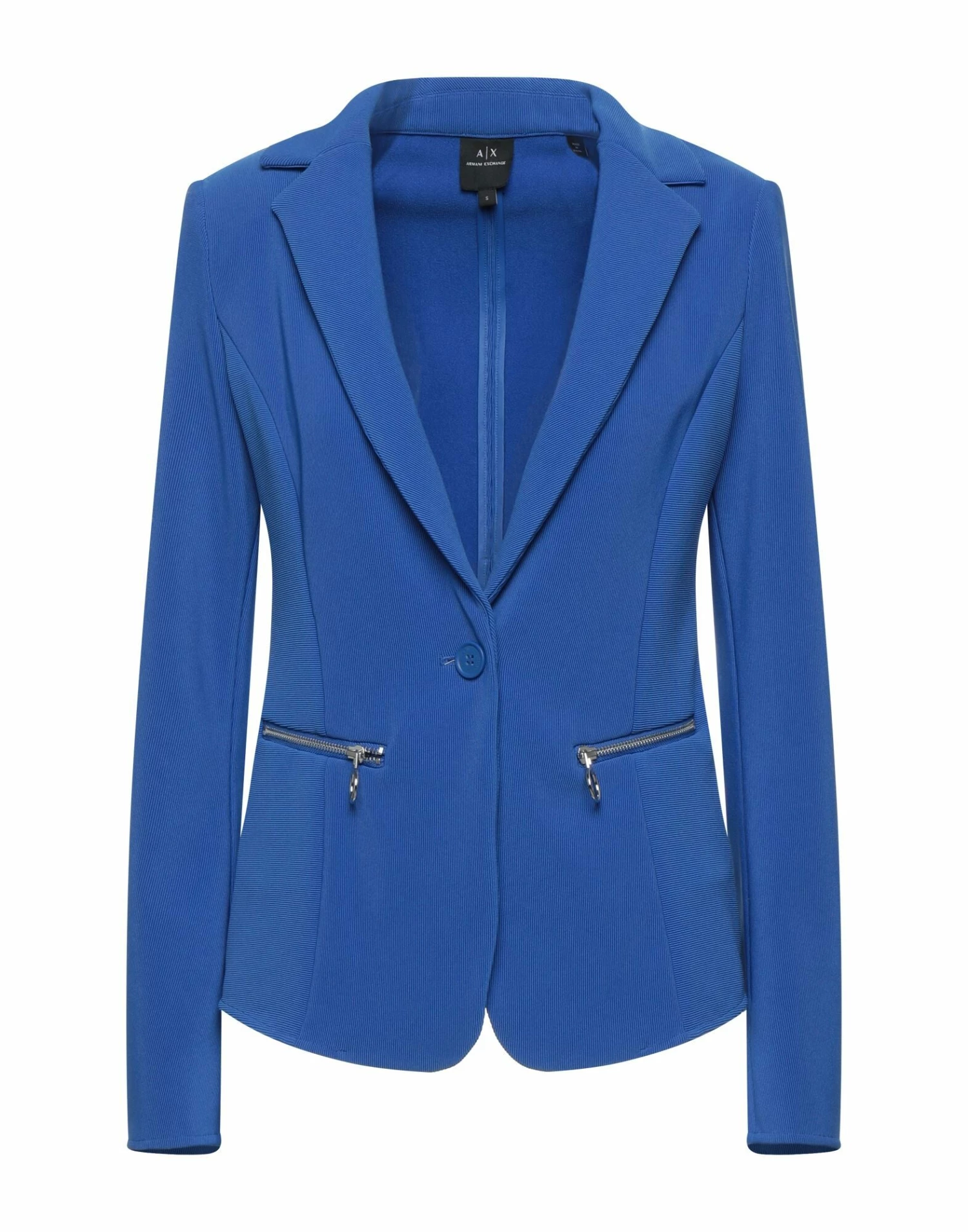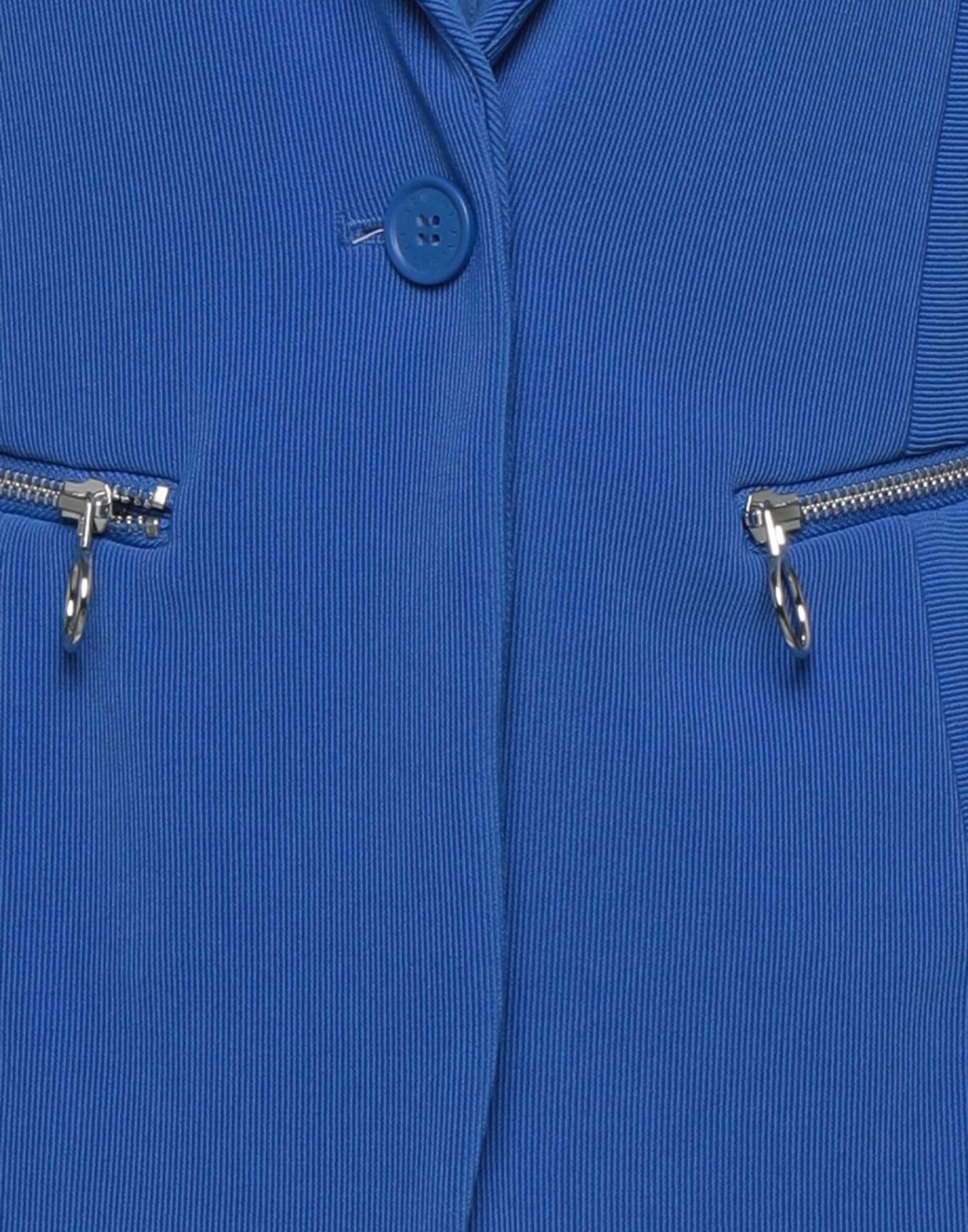 jersey, no appliqués, solid color, lapel collar, single-breasted , long sleeves, unlined, 1 button, multipockets, pocket with zipper, stretch