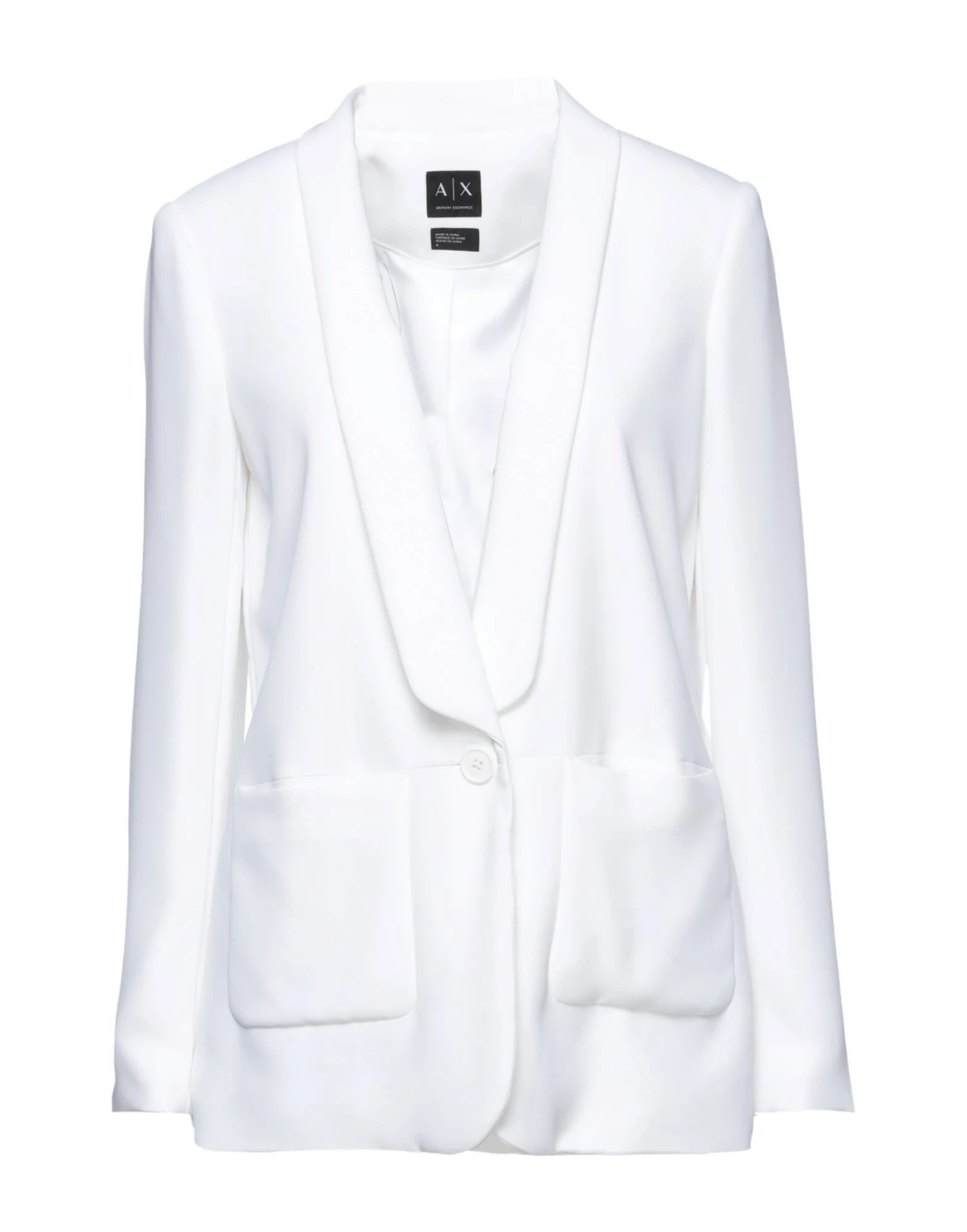 crepe, brand logo, solid color, lapel collar, single-breasted , long sleeves, fully lined, 1 button, multipockets