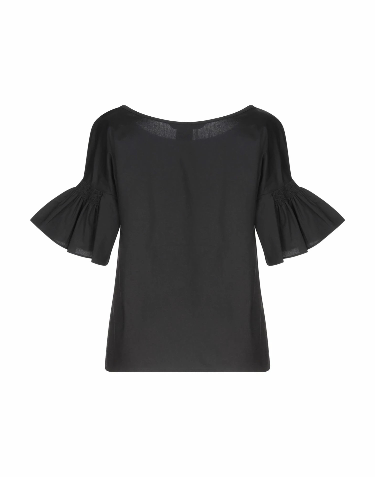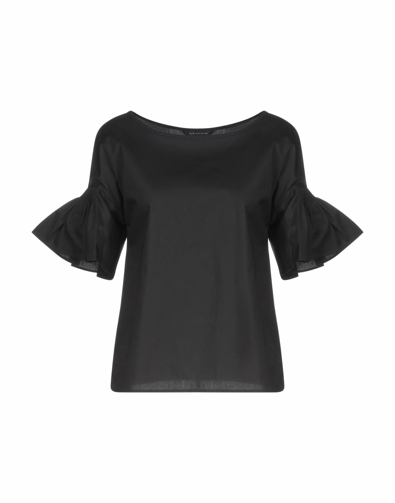 plain weave, logo, basic solid color, short sleeves, round collar, no pockets, stretch