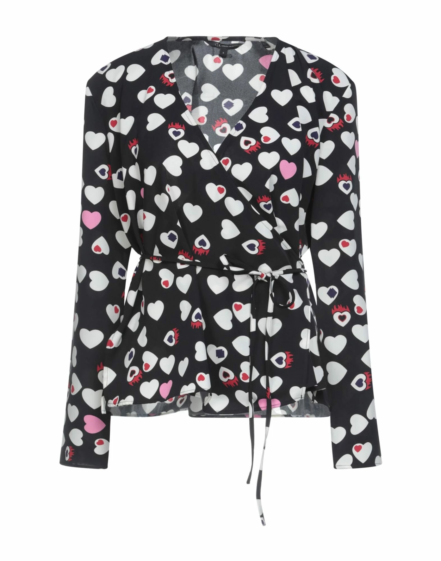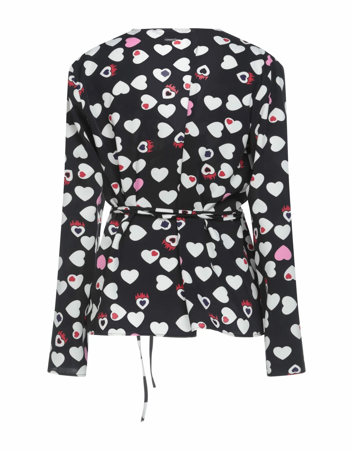 plain weave, logo, multicolor pattern, self-tie wrap closure, long sleeves, polo collar, no pockets, no pockets, stretch