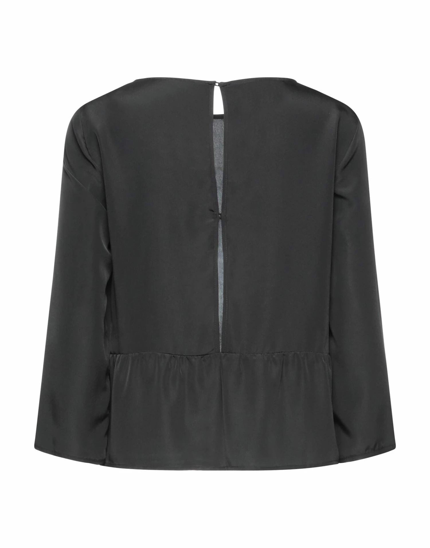 crepe, brand logo, metal applications, solid colour with appliqués, round collar, 3/4 length sleeves, no pockets, button closing