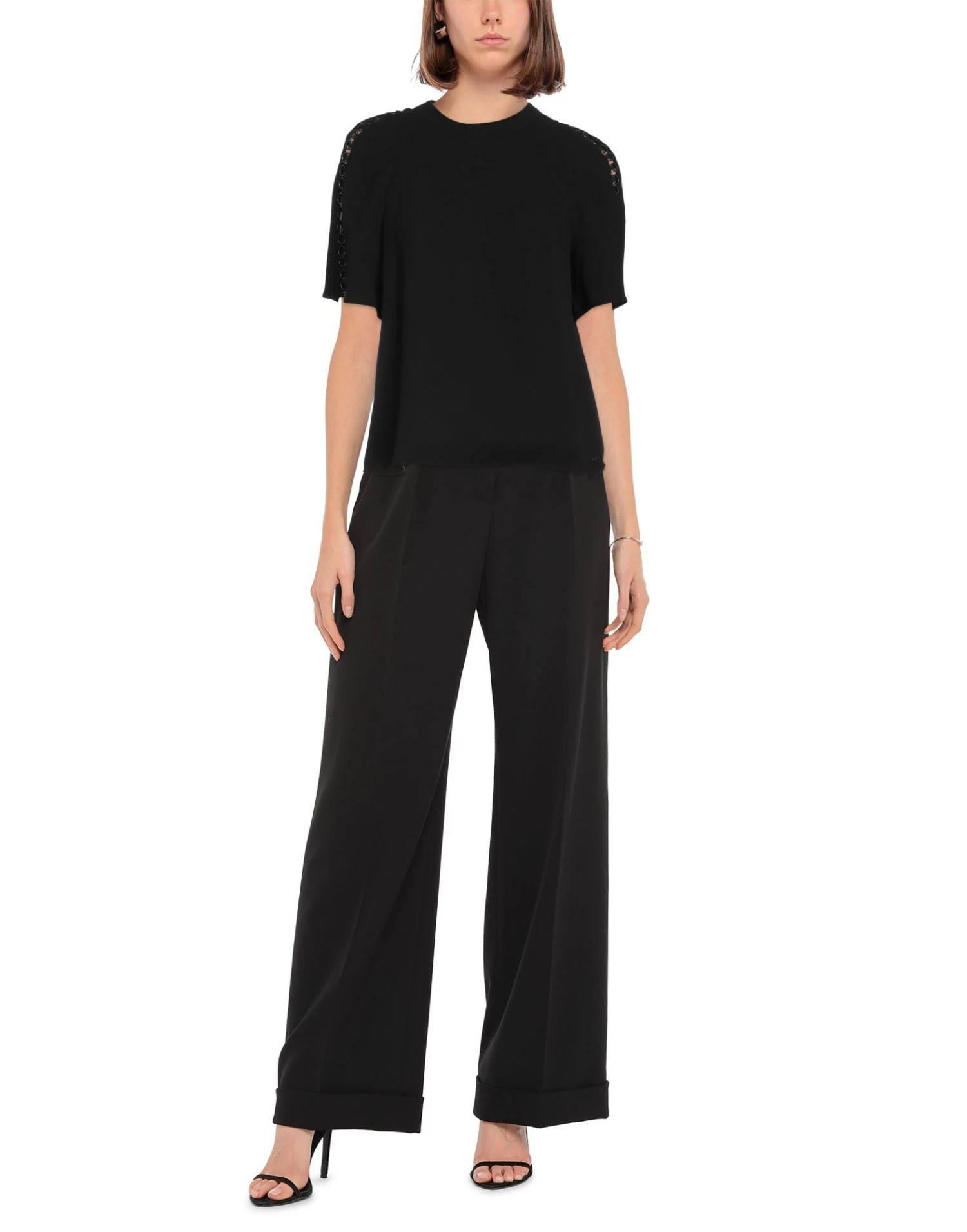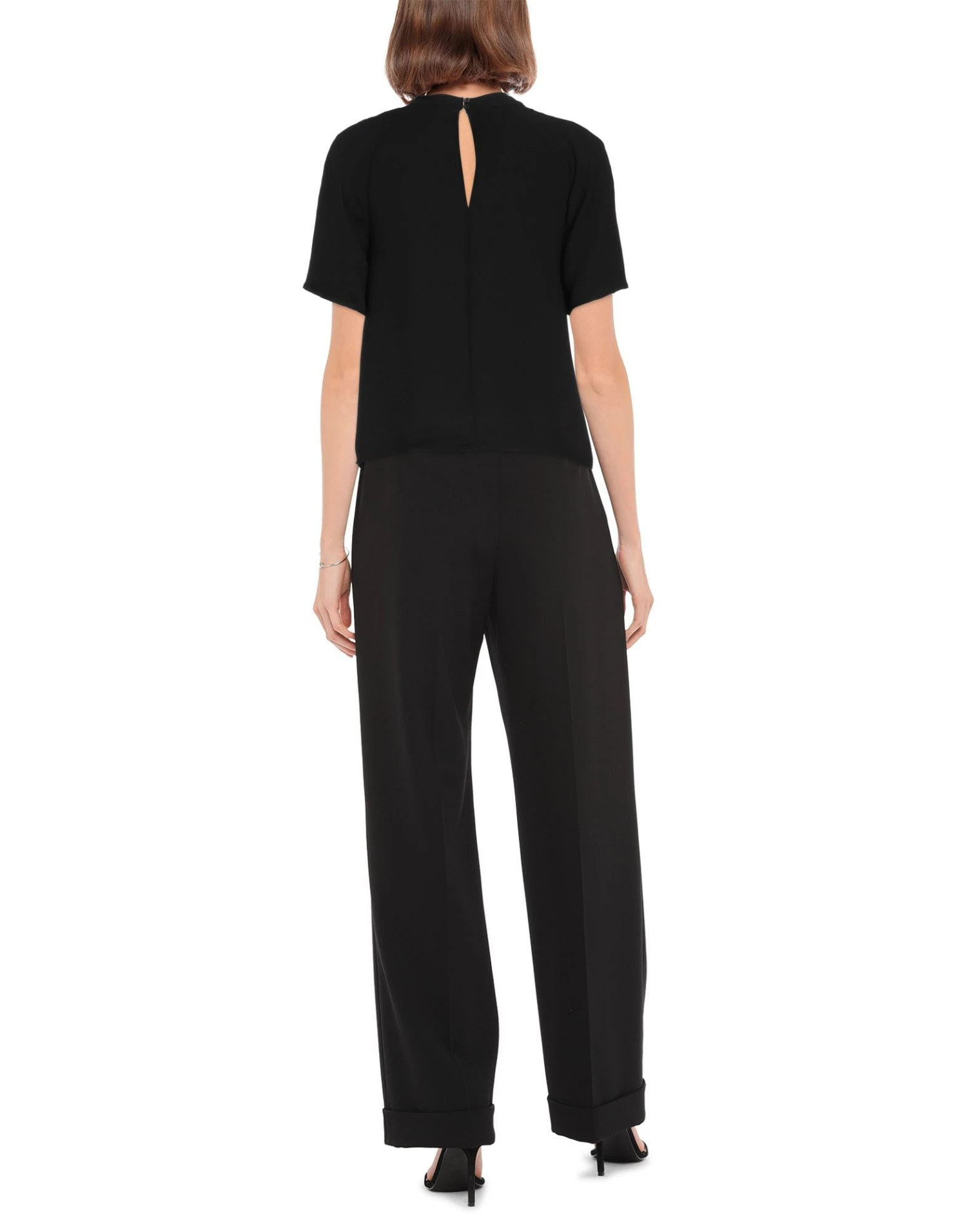 crepe, brand logo, metal applications, solid colour with appliqués, round collar, short sleeves, no pockets, button closing