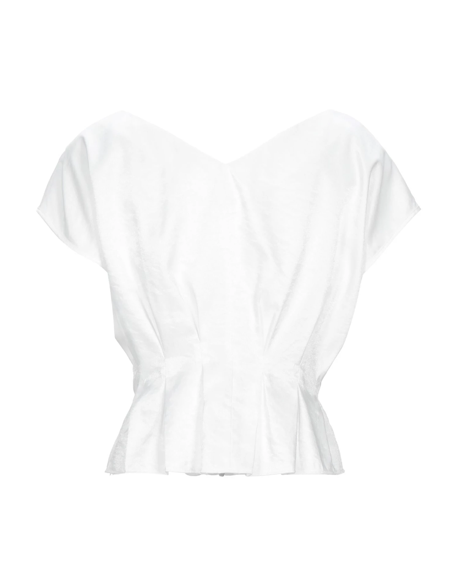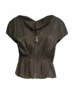 twill, logo, metal applications, basic solid color, front closure, zipper closure, short sleeves, v-neck, no pockets