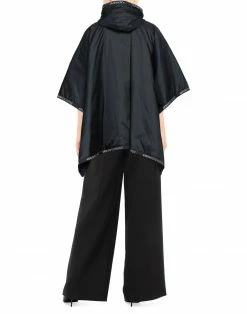 techno fabric, side seam stripes, brand logo, solid colour with appliqués, neckline with removable hood, single-breasted , sleeveless, internal padding, snap buttons fastening, zipper closure, multipockets, poncho model