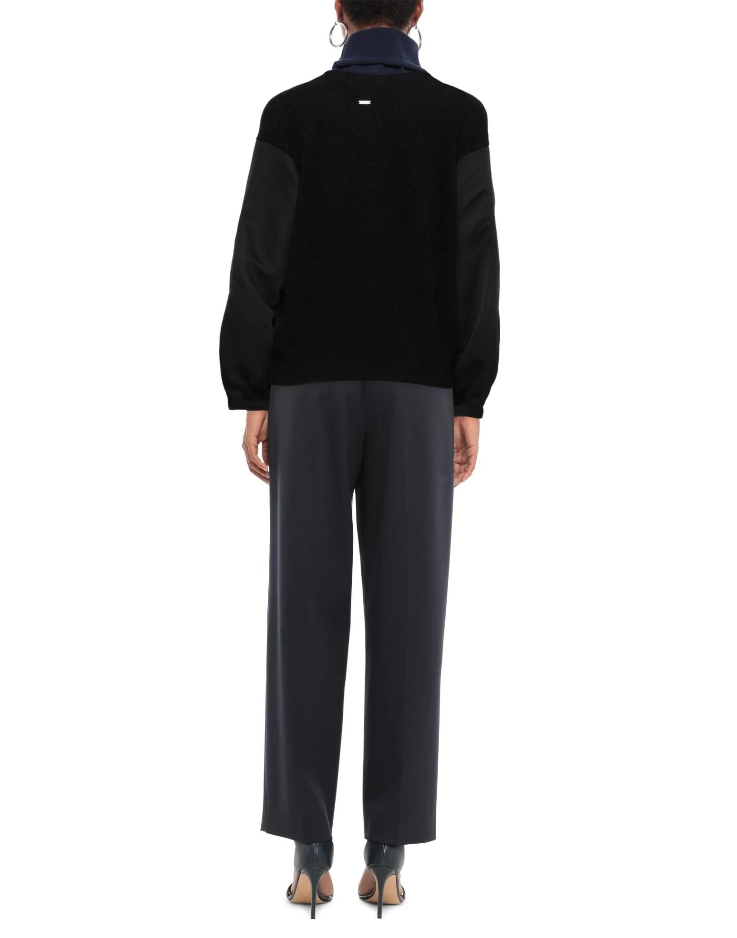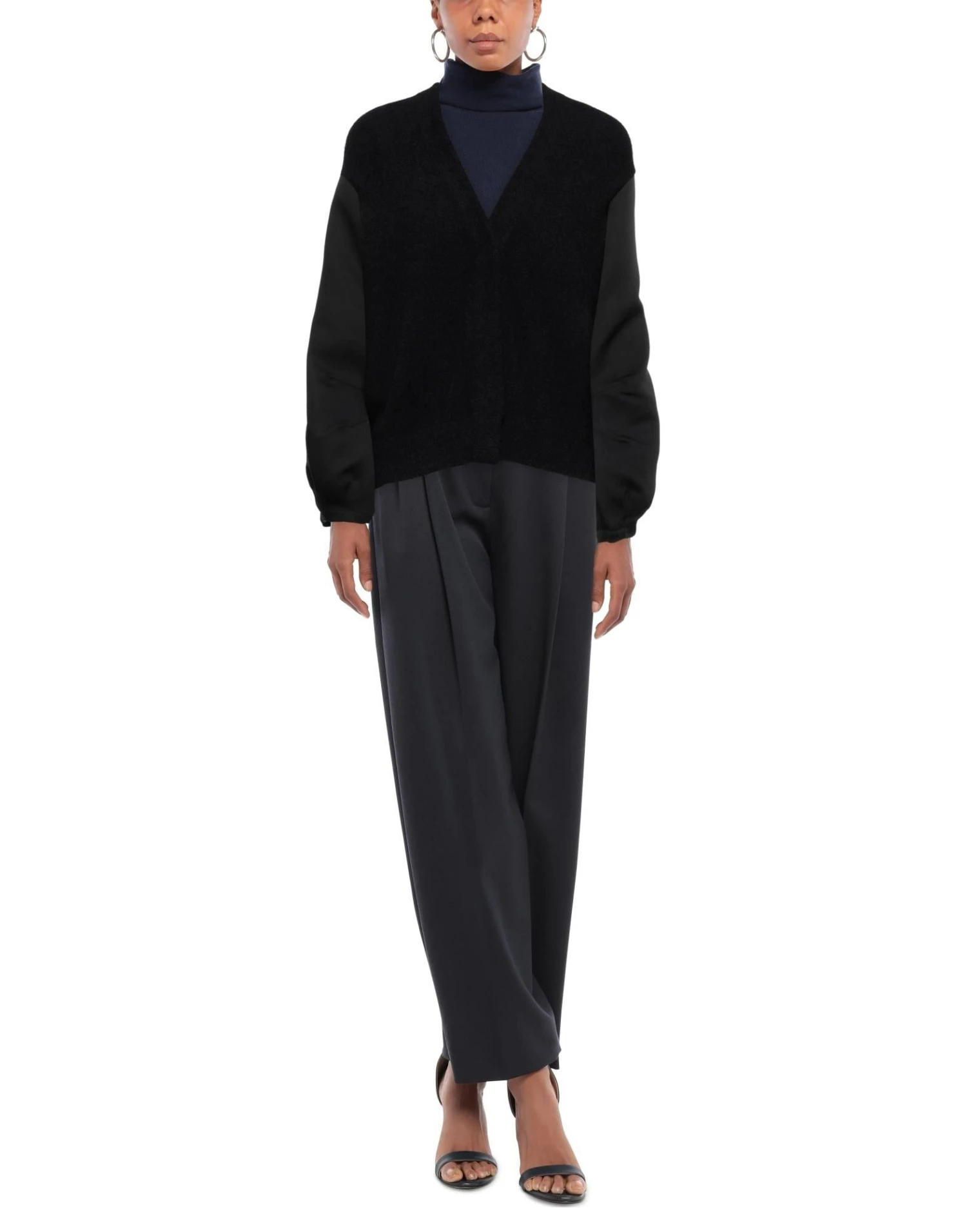 twill, knitted, medium-weight knit, brand logo, solid color, deep neckline, long sleeves, snap buttons fastening, no pockets