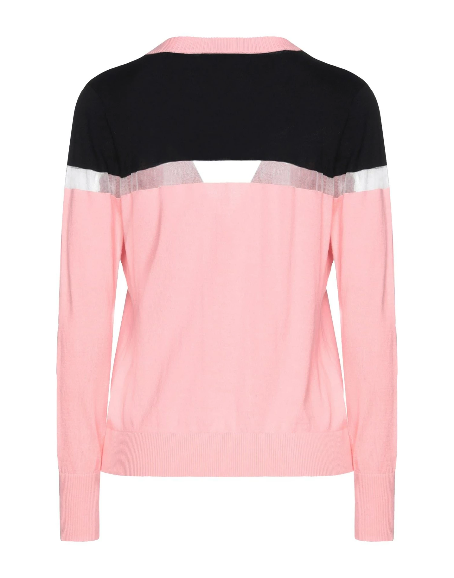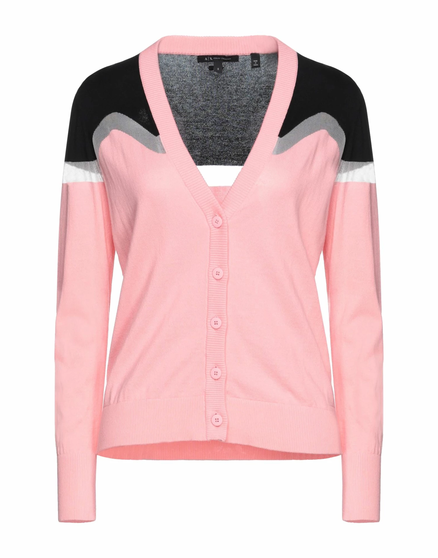 knitted, brand logo, lightweight knit, two-tone, v-neck, long sleeves, button closing, no pockets