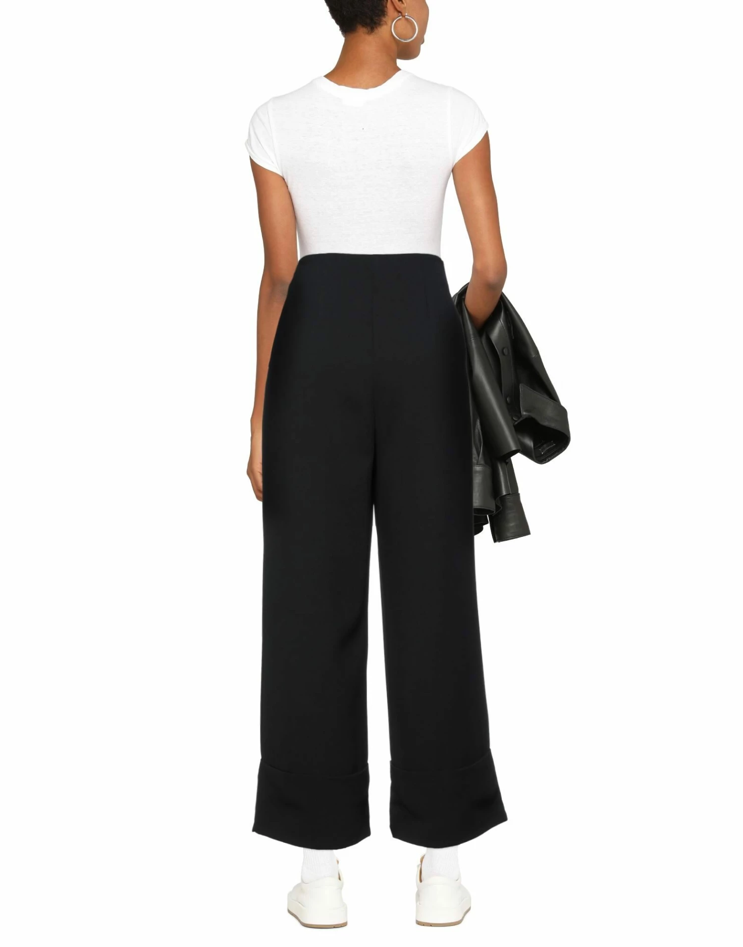 plain weave, solid color, brand logo, high waisted, comfort fit, wide leg, zipper closure, multipockets