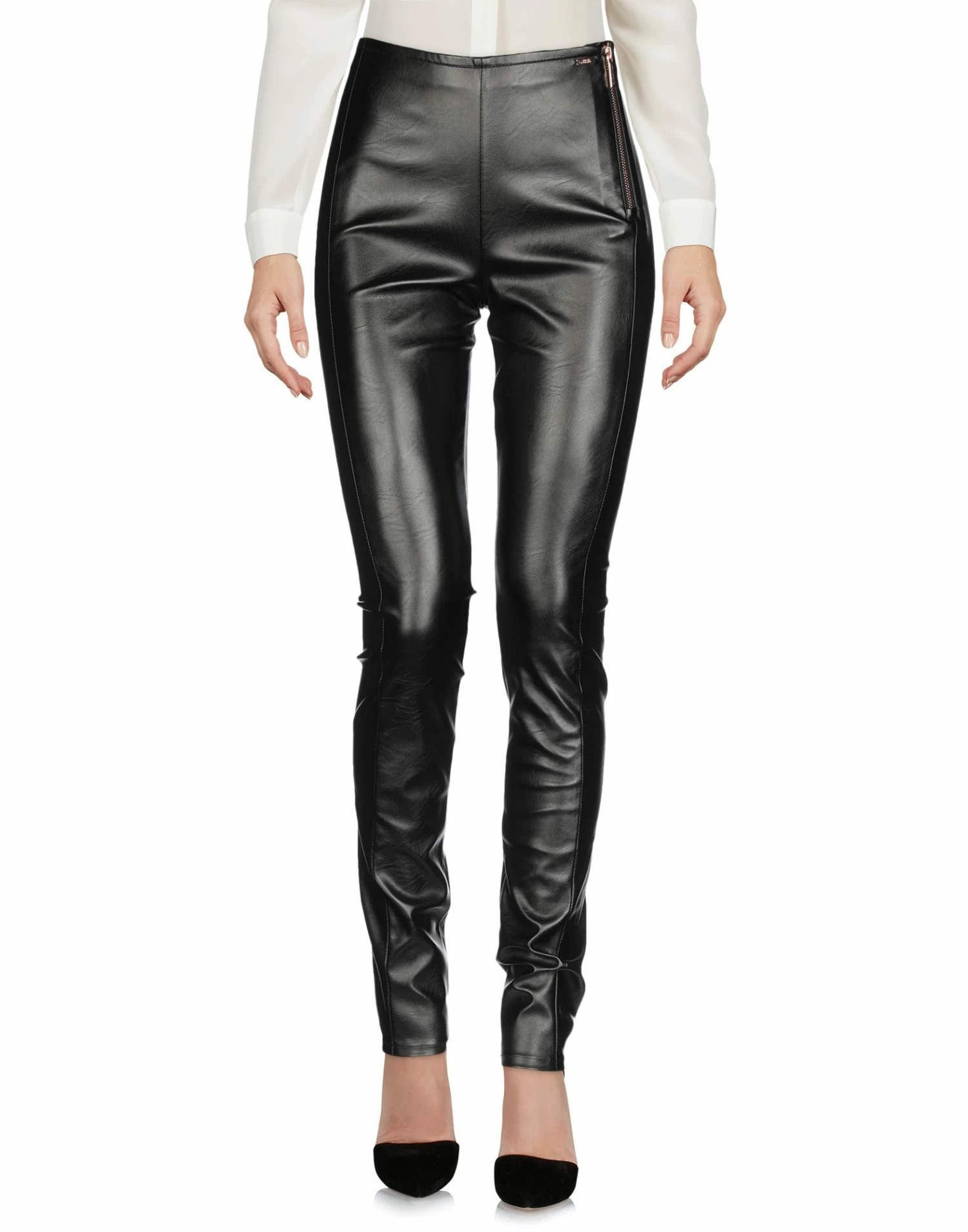 coated fabric, basic solid color, logo, mid rise, slim fit, tapered leg, zipper closure, zips at hem