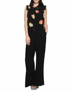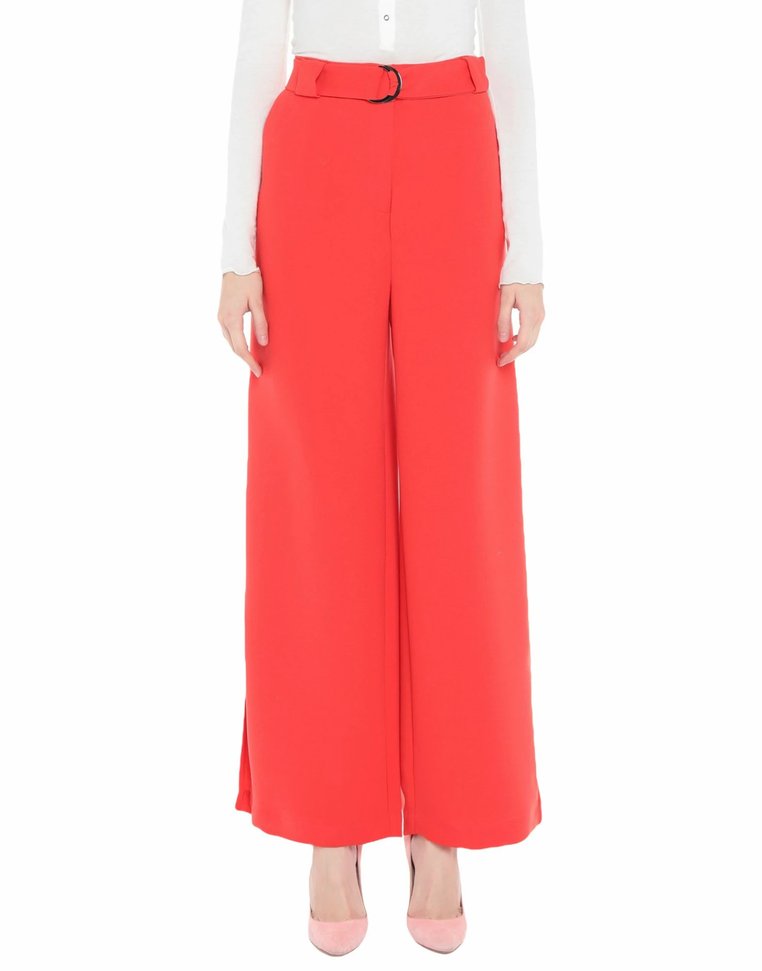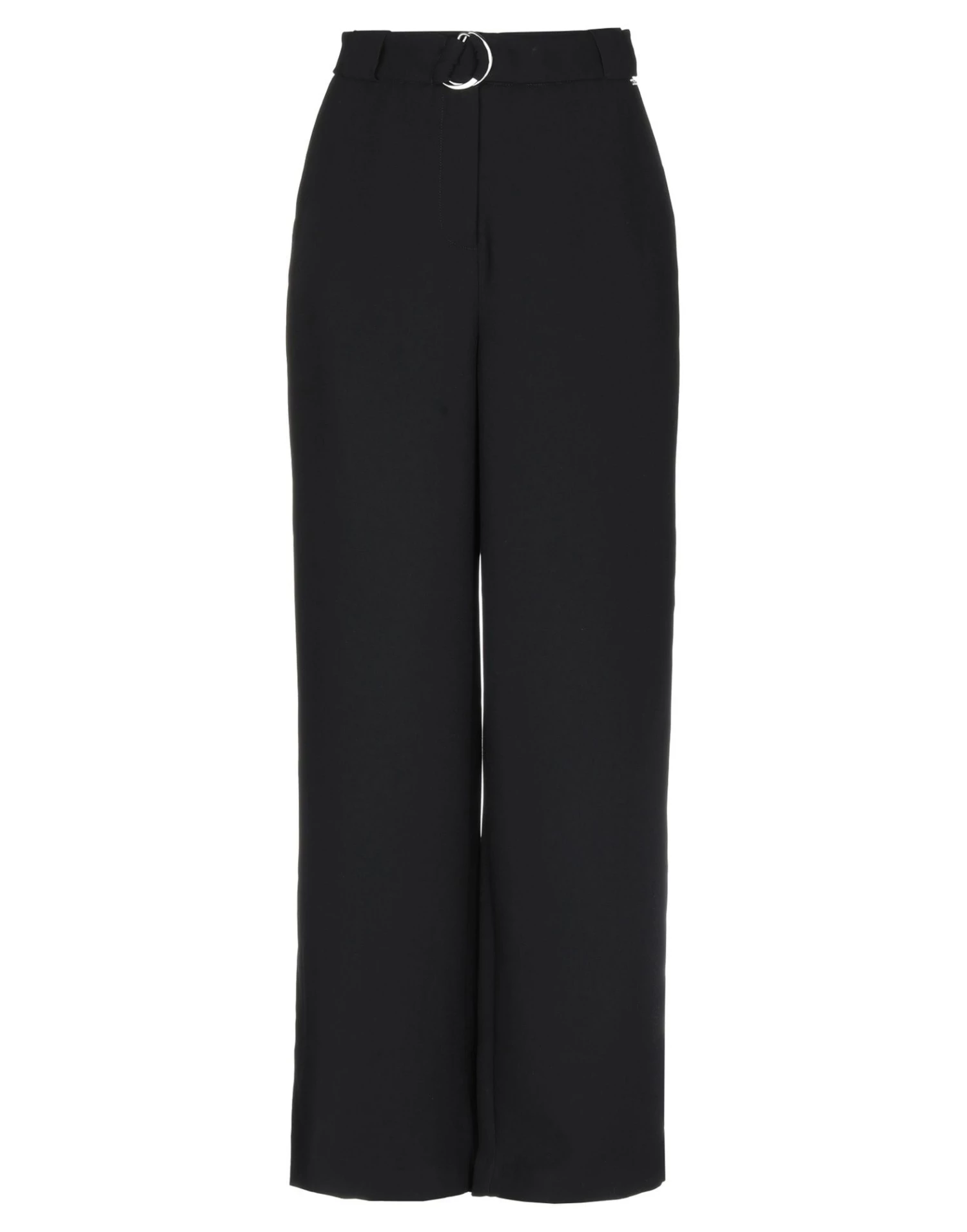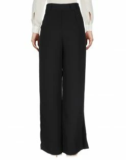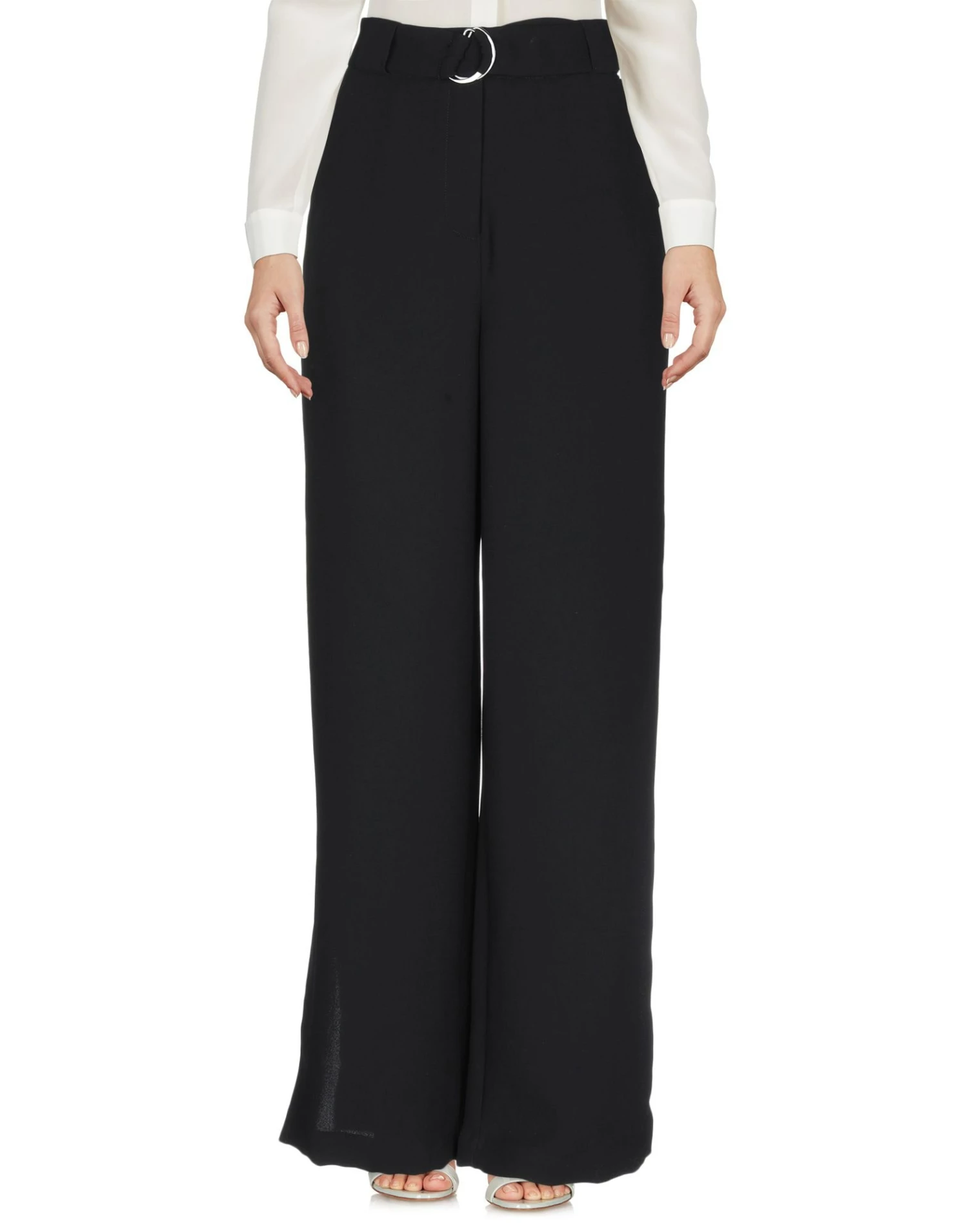 side slit hemline, crepe, logo, belt, basic solid color, high waisted, regular fit, wide leg, hook-and-bar, zip, multipockets, tailored
