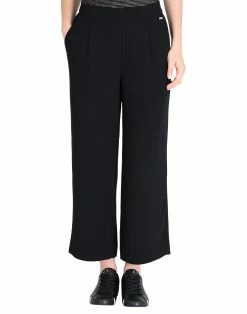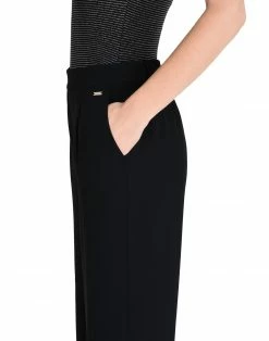 crepe, darts, logo, basic solid color, high waisted, comfort fit, wide leg, elasticized waist, multipockets, stretch, pants
