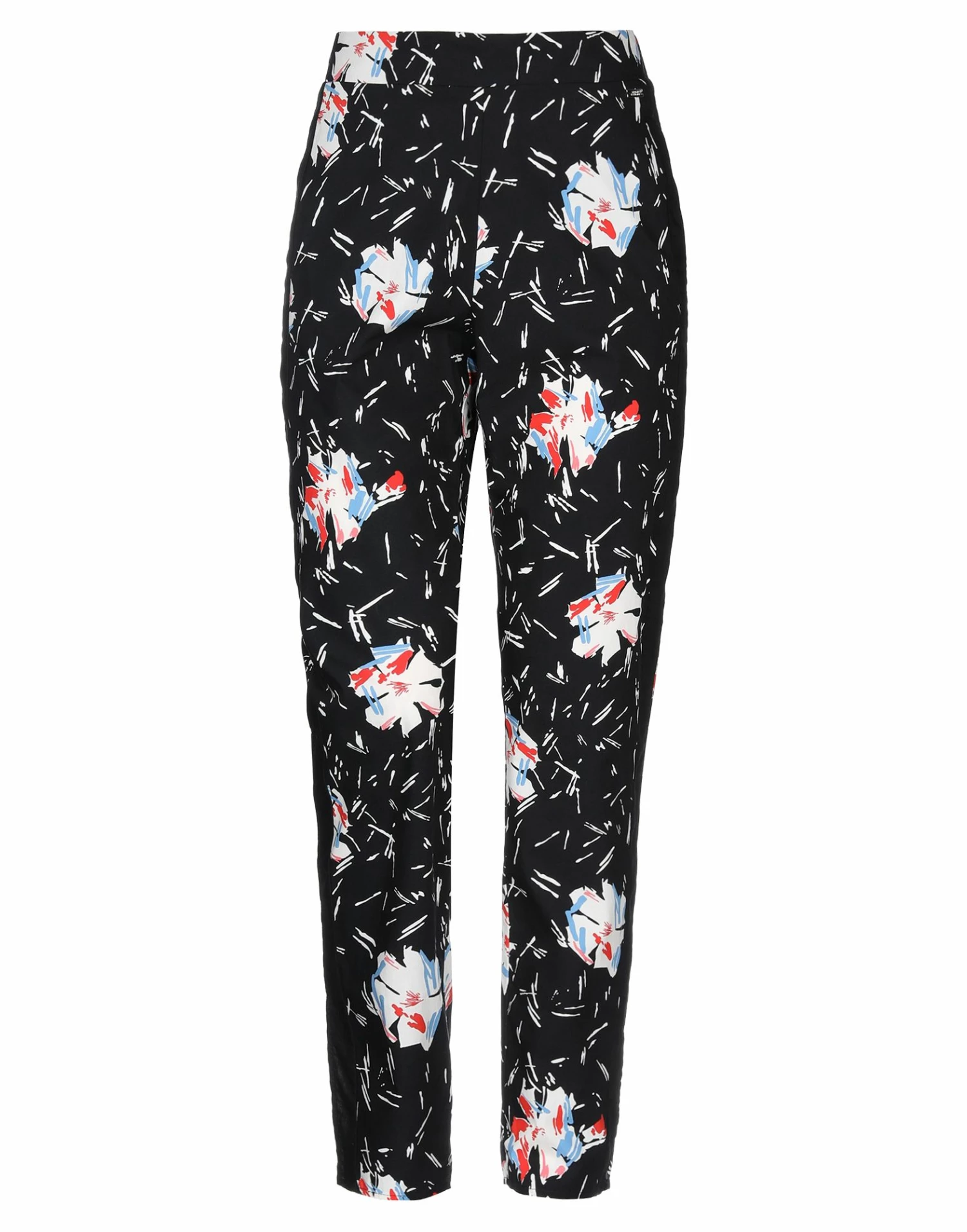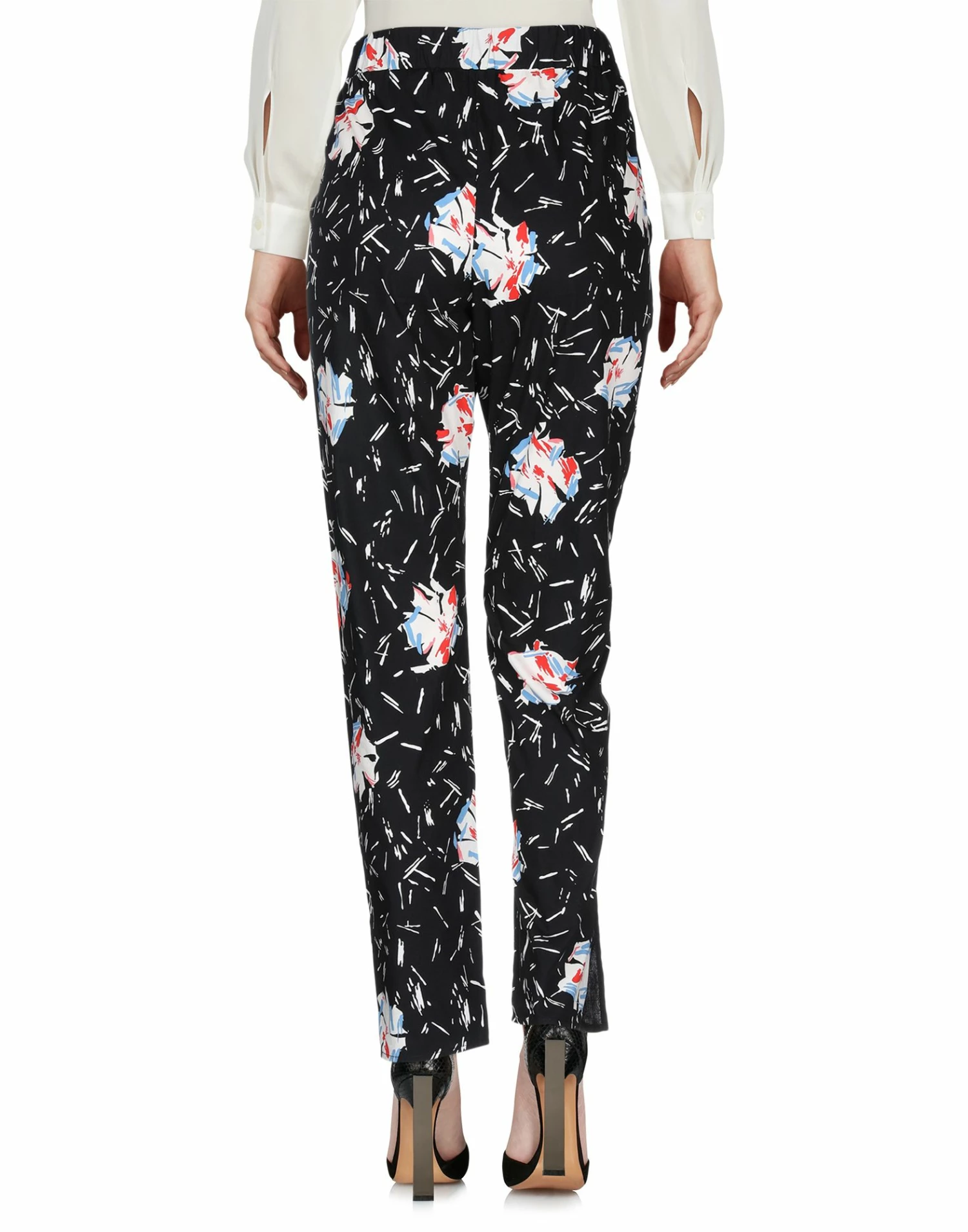 plain weave, logo, floral design, mid rise, regular fit, tapered leg, elasticized waist, multipockets, side slit hemline