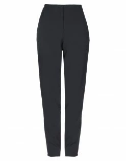 satin, crepe, logo, basic solid color, low waisted, regular fit, tapered leg, hook-and-bar, zip, multipockets, stretch