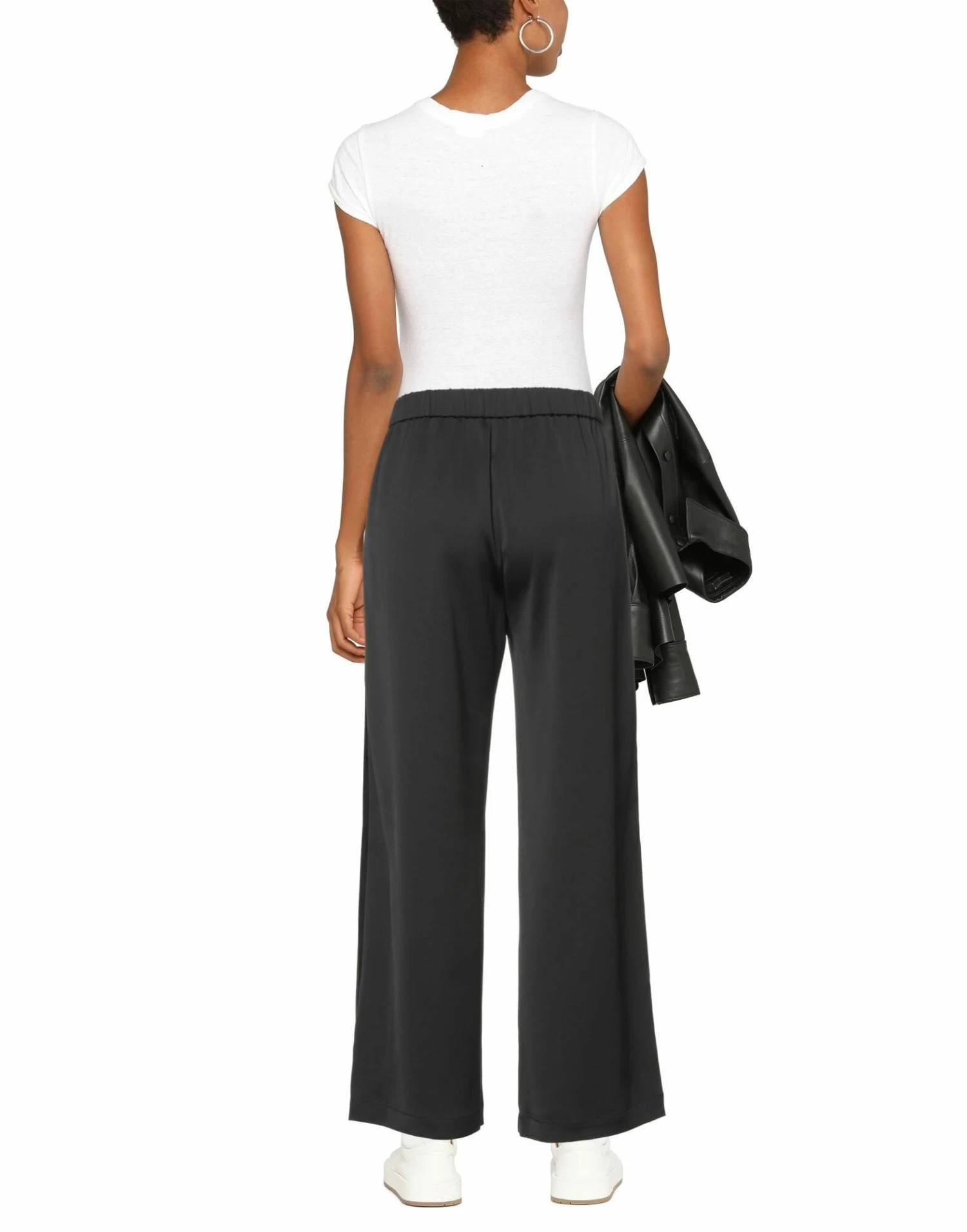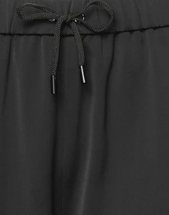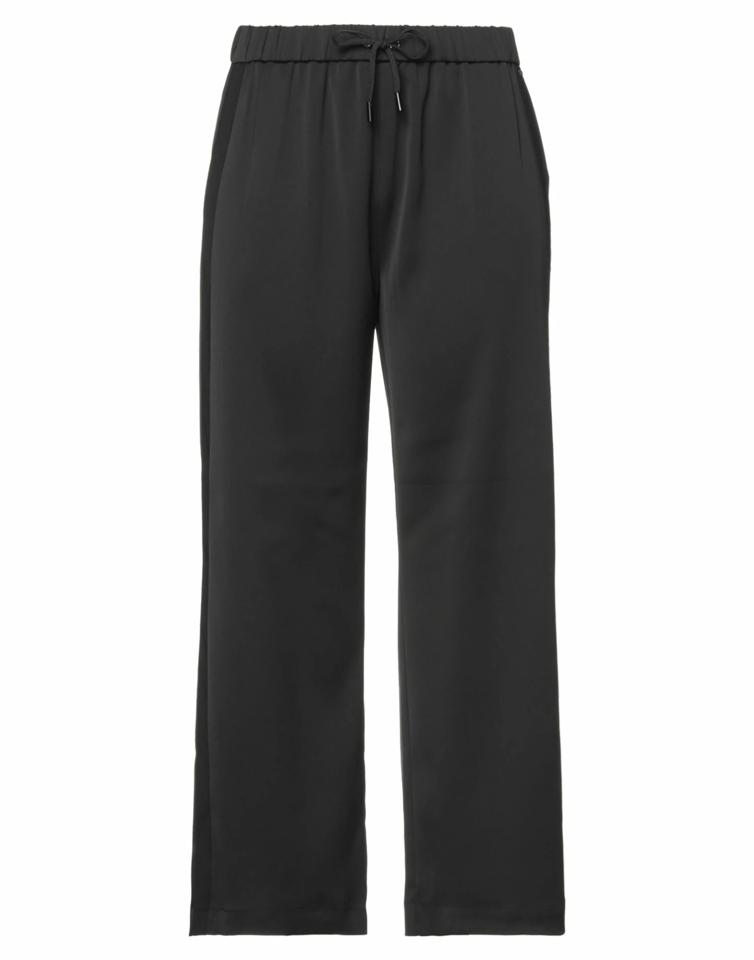 crepe, satin, brand logo, solid color, high waisted, wide leg, comfort fit, drawstring closure, multipockets
