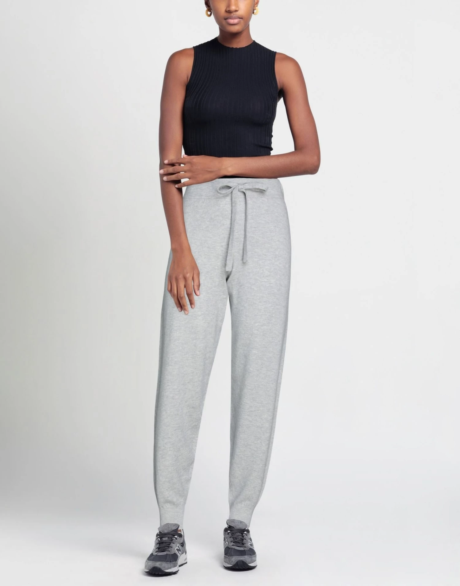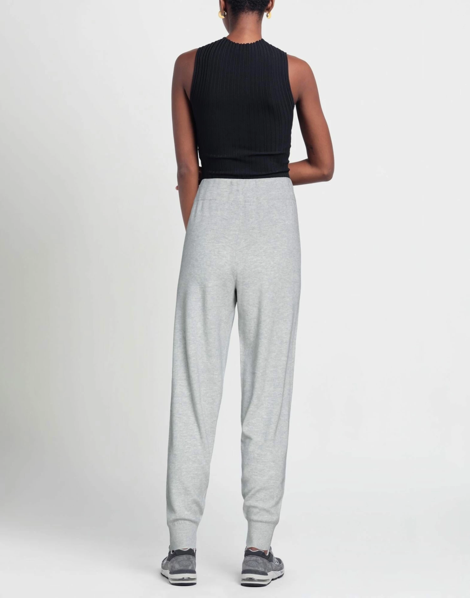 knitted, mélange, brand logo, solid color, high waisted, tapered leg, drawstring closure, multipockets, regular fit, lightweight knit, sporty