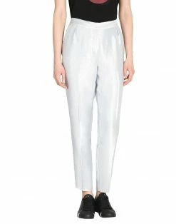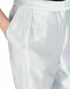 satin, logo, basic solid color, high waisted, regular fit, tapered leg, hook-and-bar, zip, multipockets, tailored