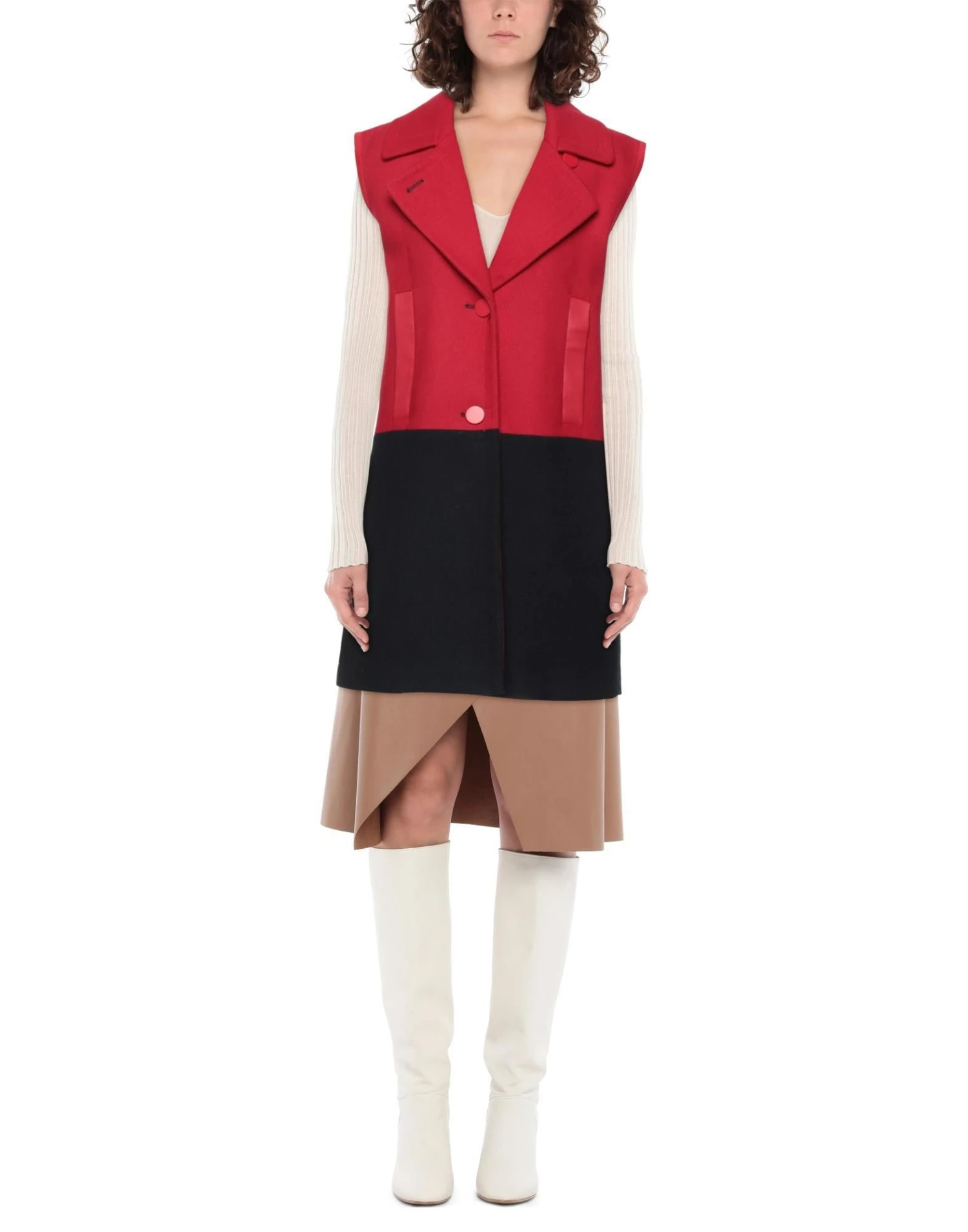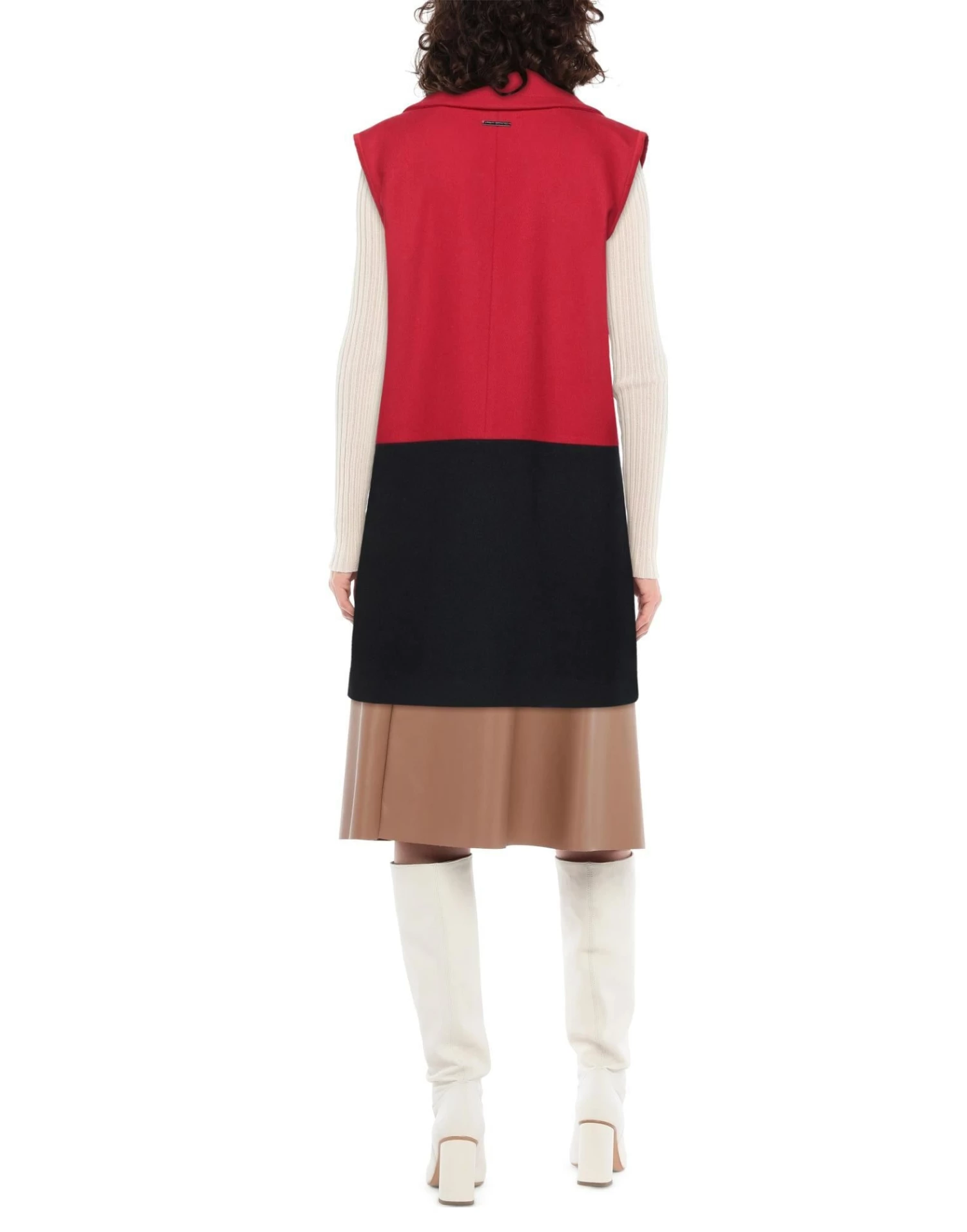 coated fabric, baize, no appliqués, two-tone, lapel collar, single-breasted , sleeveless, fully lined, button closing, multipockets
