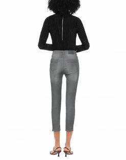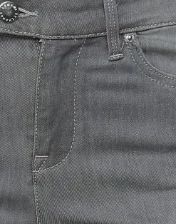 denim, faded, brand logo, mid rise, solid color, slim-leg pants, button closing, zipper closure, five pockets, stretch, colored wash