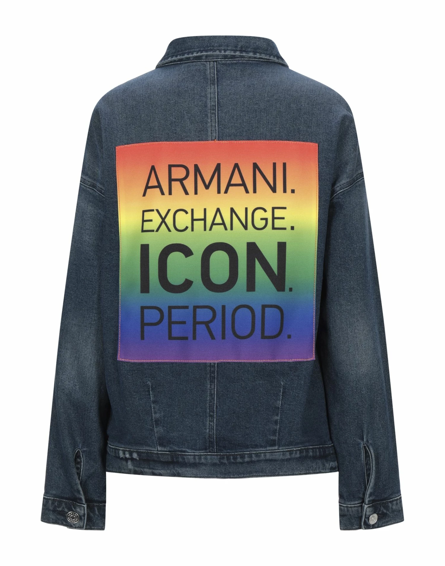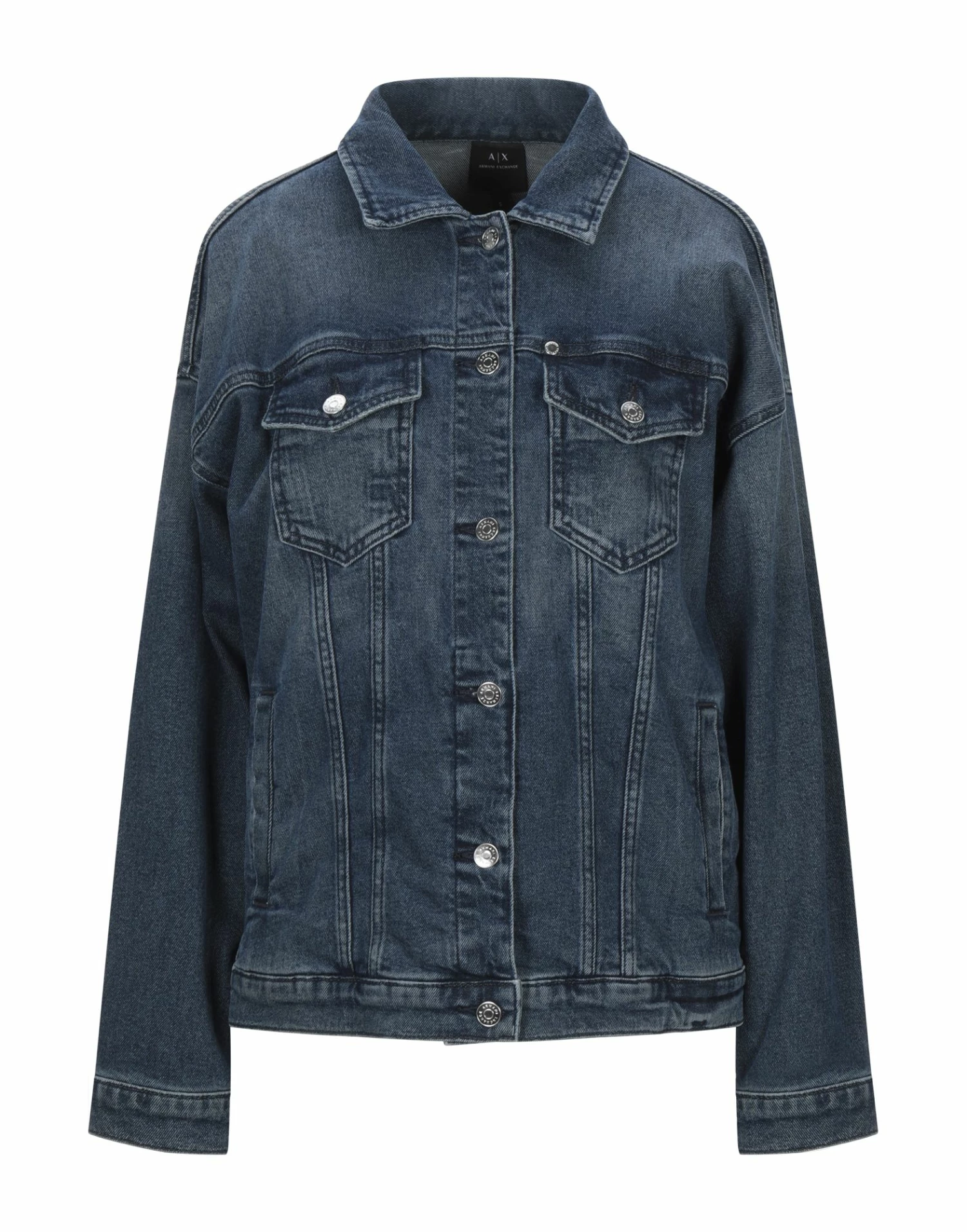 denim, logo, contrasting applications, solid color, medium wash, long sleeves, classic neckline, single-breasted , front closure, button closing, multipockets, unlined, faded