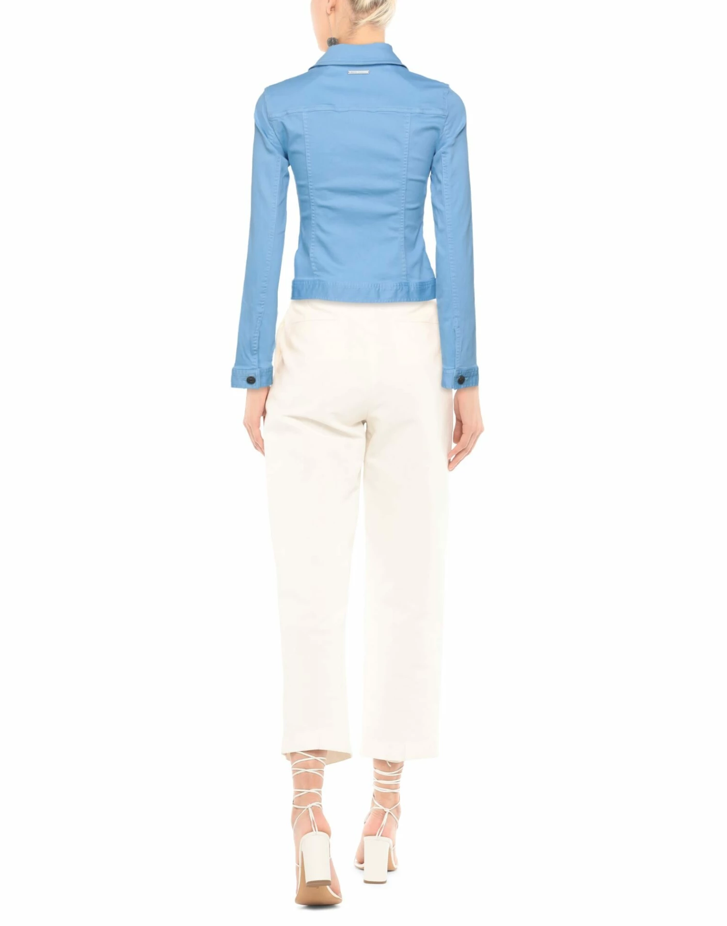 denim, brand logo, solid color, single-breasted , classic neckline, long sleeves, button closing, multipockets, unlined, stretch, colored wash