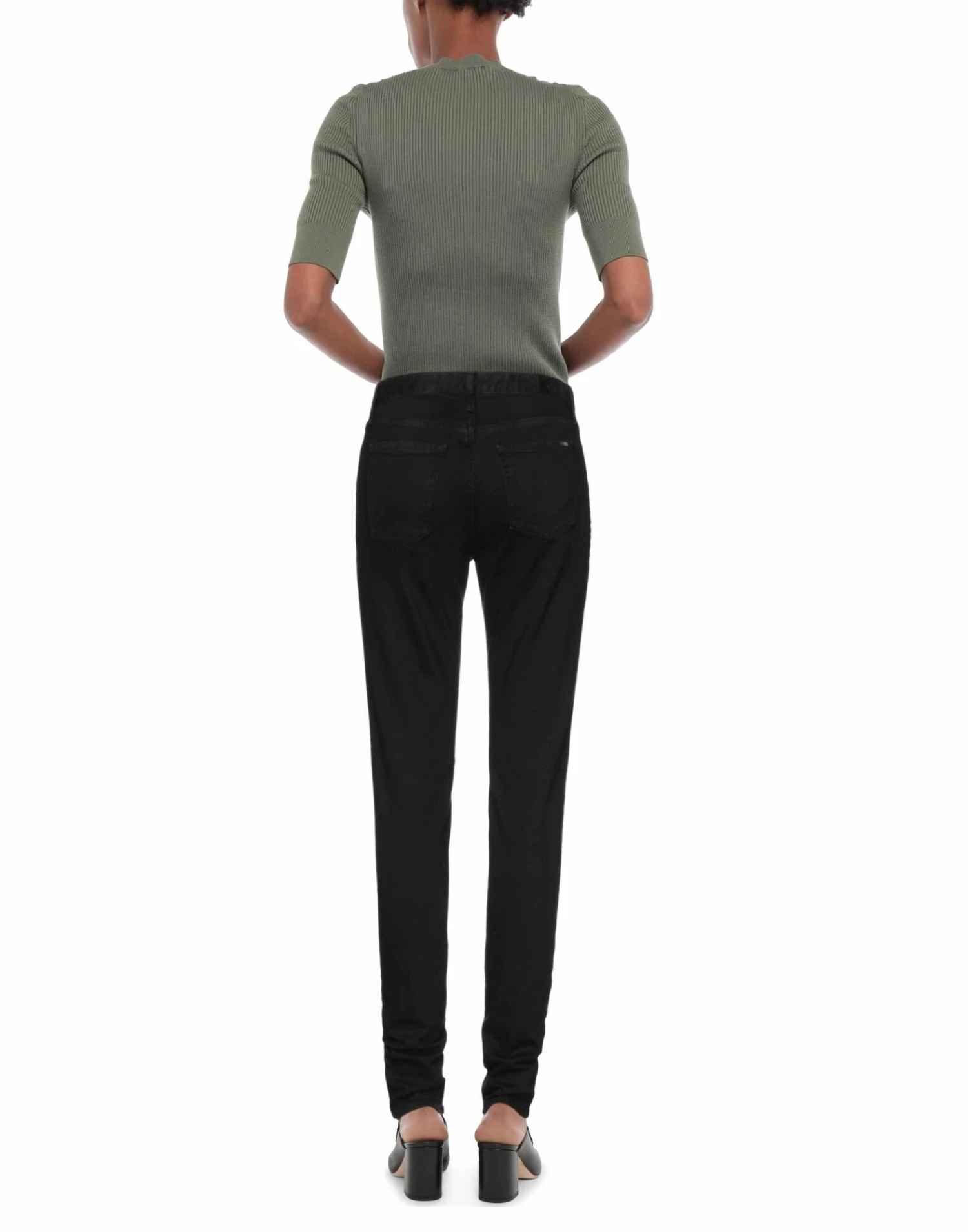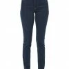 denim, brand logo, solid color, colored wash, mid rise, tapered leg, slim-leg pants, button closing, zipper closure, multipockets