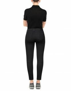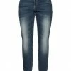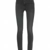 denim, brand logo, solid color, colored wash, high waisted, belt loops, slim-leg pants, zipper closure, button closing, multipockets, stretch, cotton made in africa is produced by smallholder farms held to strict environmental standards.