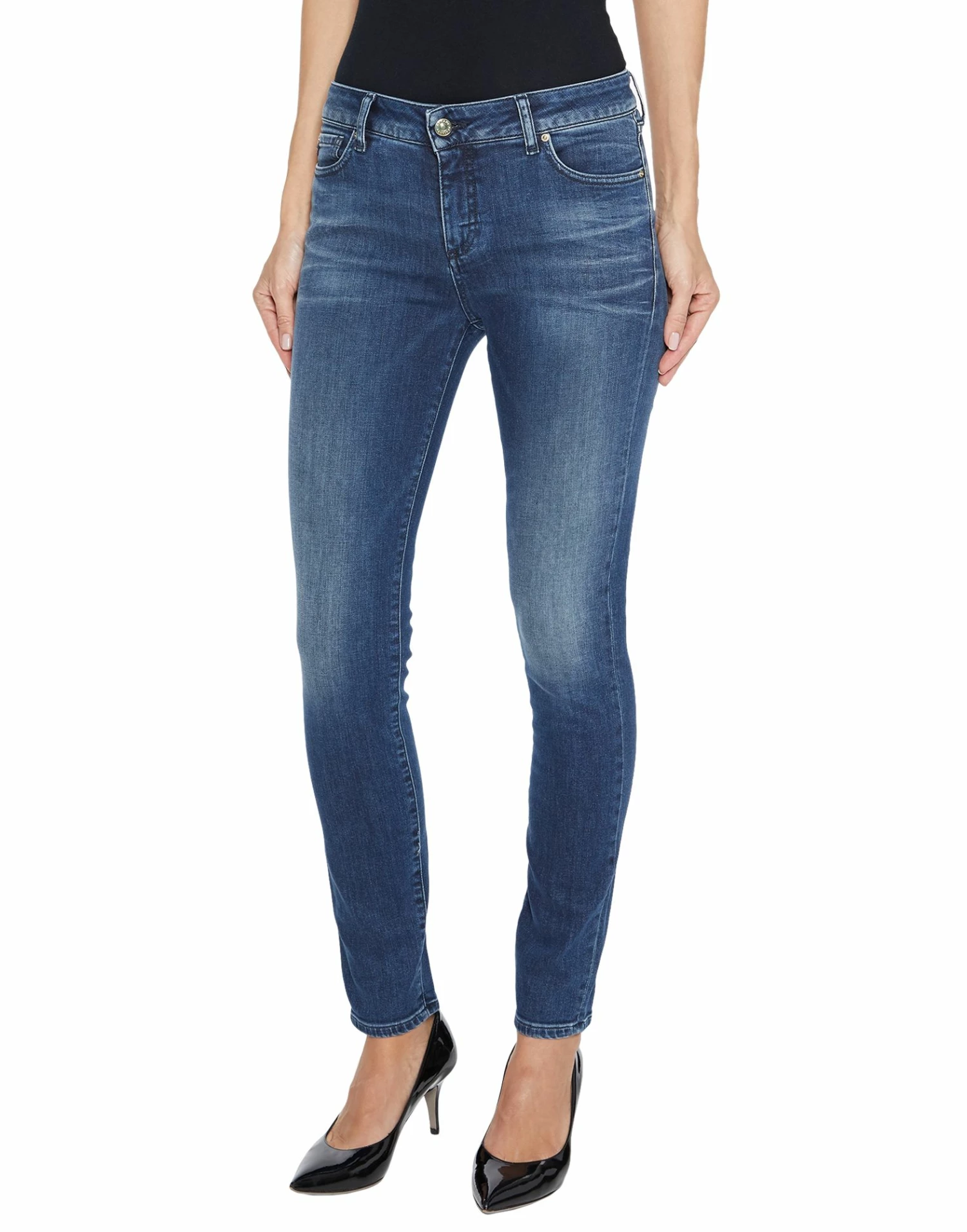 logo, solid color, medium wash, faded, multipockets, front closure, mid rise, button, zip