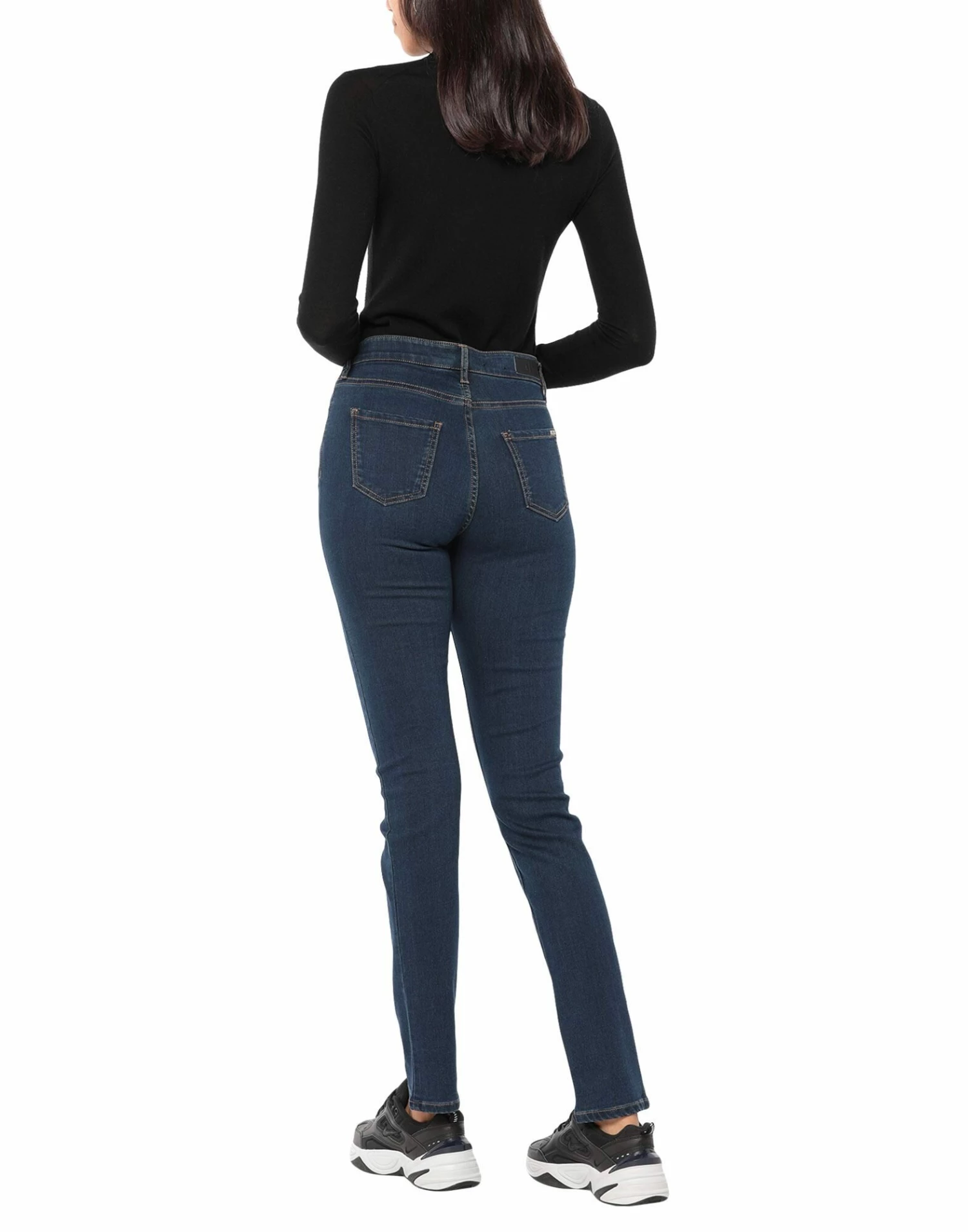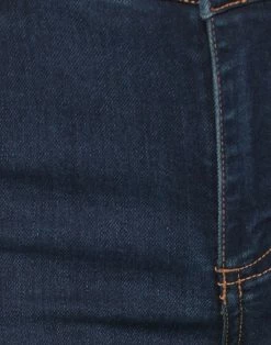 denim, brand logo, leather applications, solid color, dark wash, mid rise, multipockets, stretch, contains non-textile parts of animal origin, tapered leg, slim-leg pants