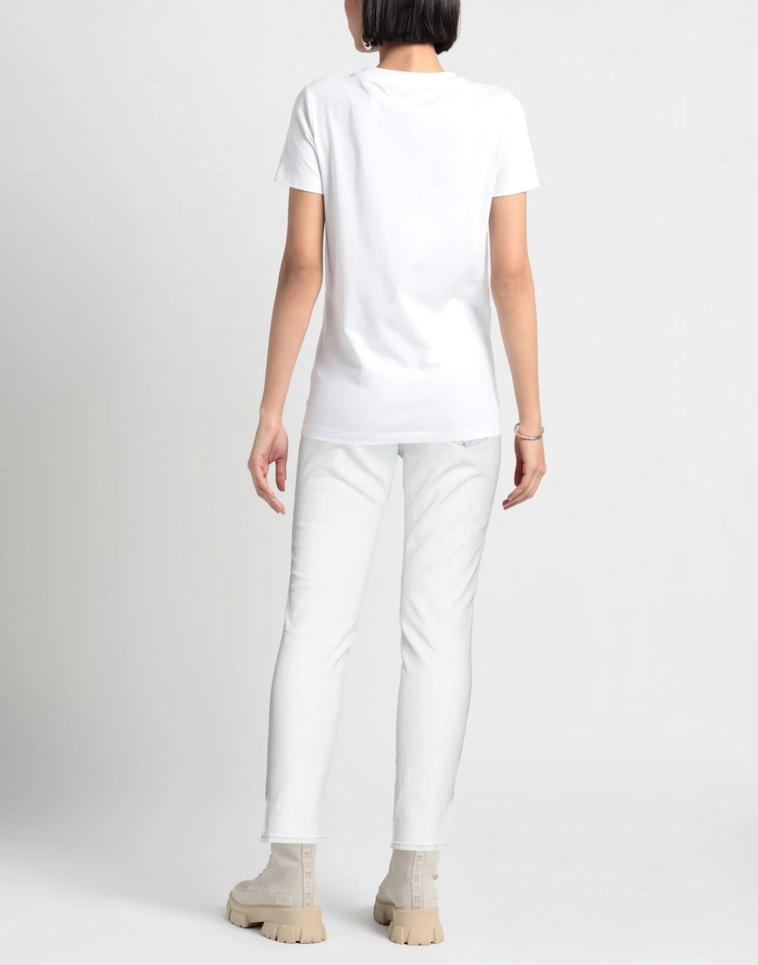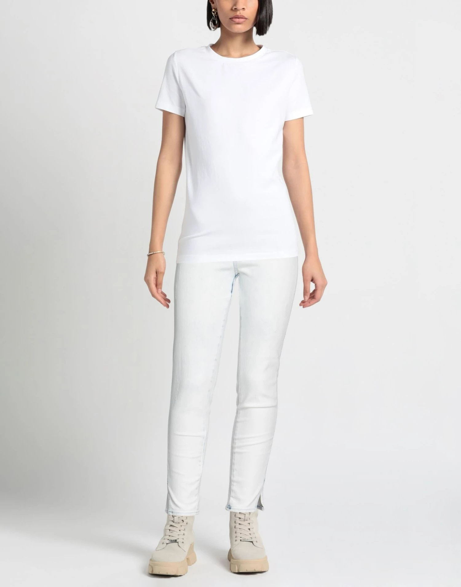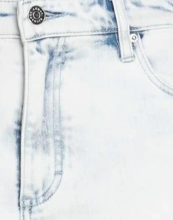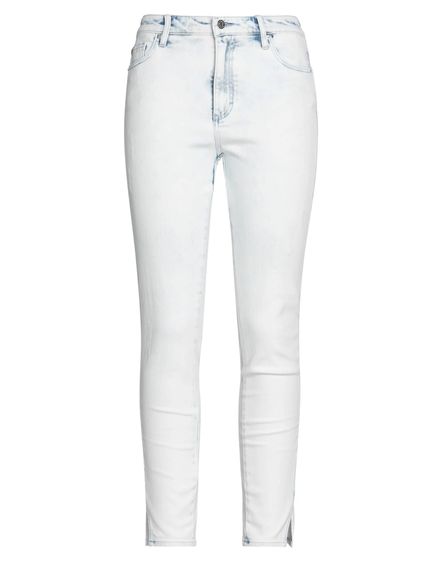 denim, faded, worn effect, brand logo, solid color, light wash, high waisted, tapered leg, slim-leg pants, button closing, zipper closure, multipockets, skinny model