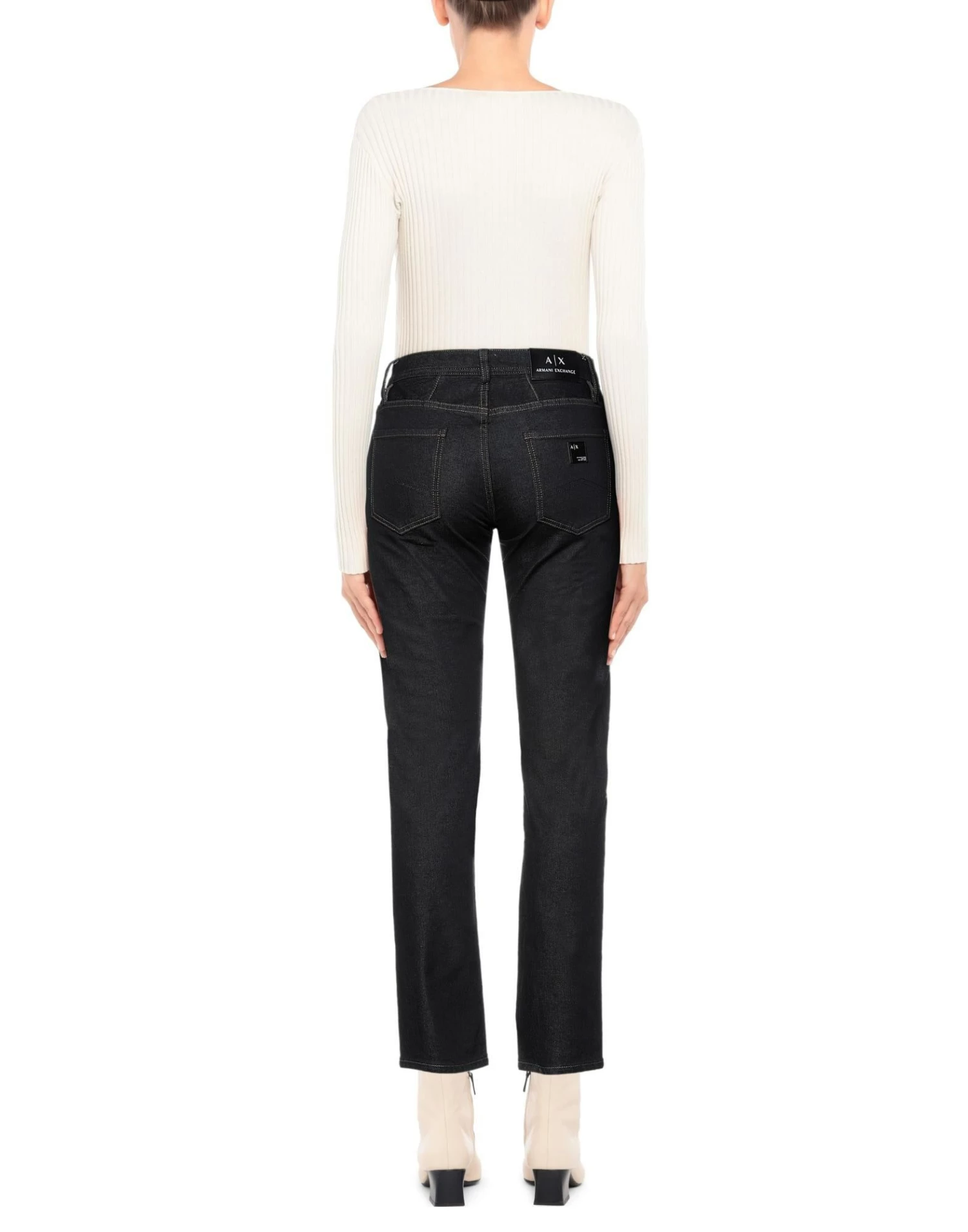 denim, dark wash, brand logo, mid rise, solid color, regular fit, tapered leg, 1 button, zipper closure, multipockets