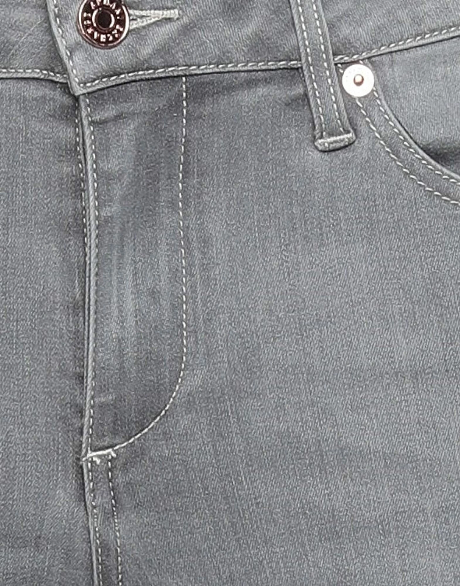 denim, faded, brand logo, colored wash, solid color, mid rise, button closing, multipockets