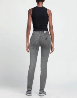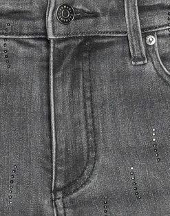 denim, faded, rhinestones, brand logo, solid colour with appliqués, colored wash, mid rise, belt loops, tapered leg, slim-leg pants, zipper closure, 1 button, five pockets, contains non-textile parts of animal origin, skinny model