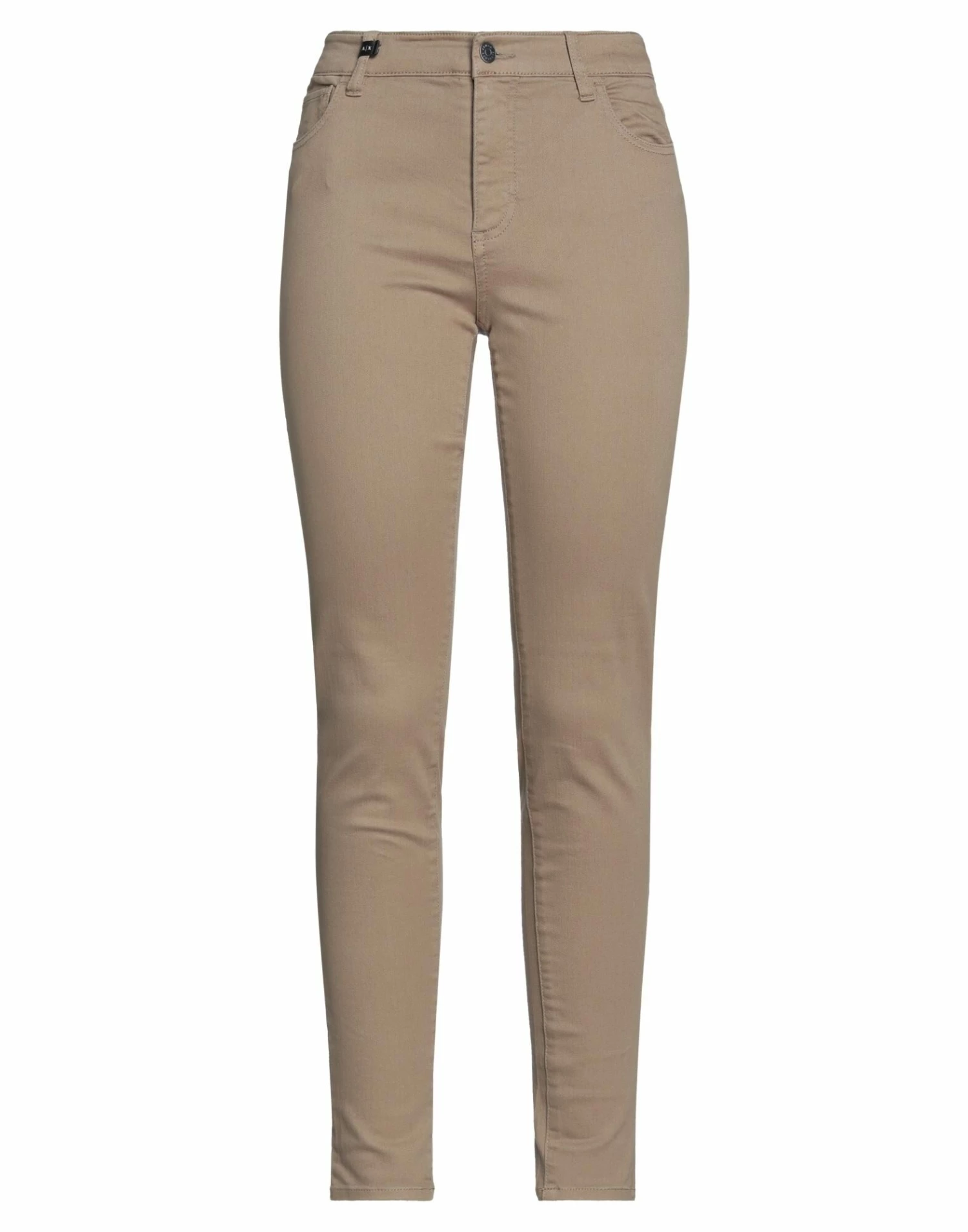 denim, brand logo, solid color, mid rise, tapered leg, slim-leg pants, 1 button, zipper closure, five pockets, stretch, colored wash, skinny model