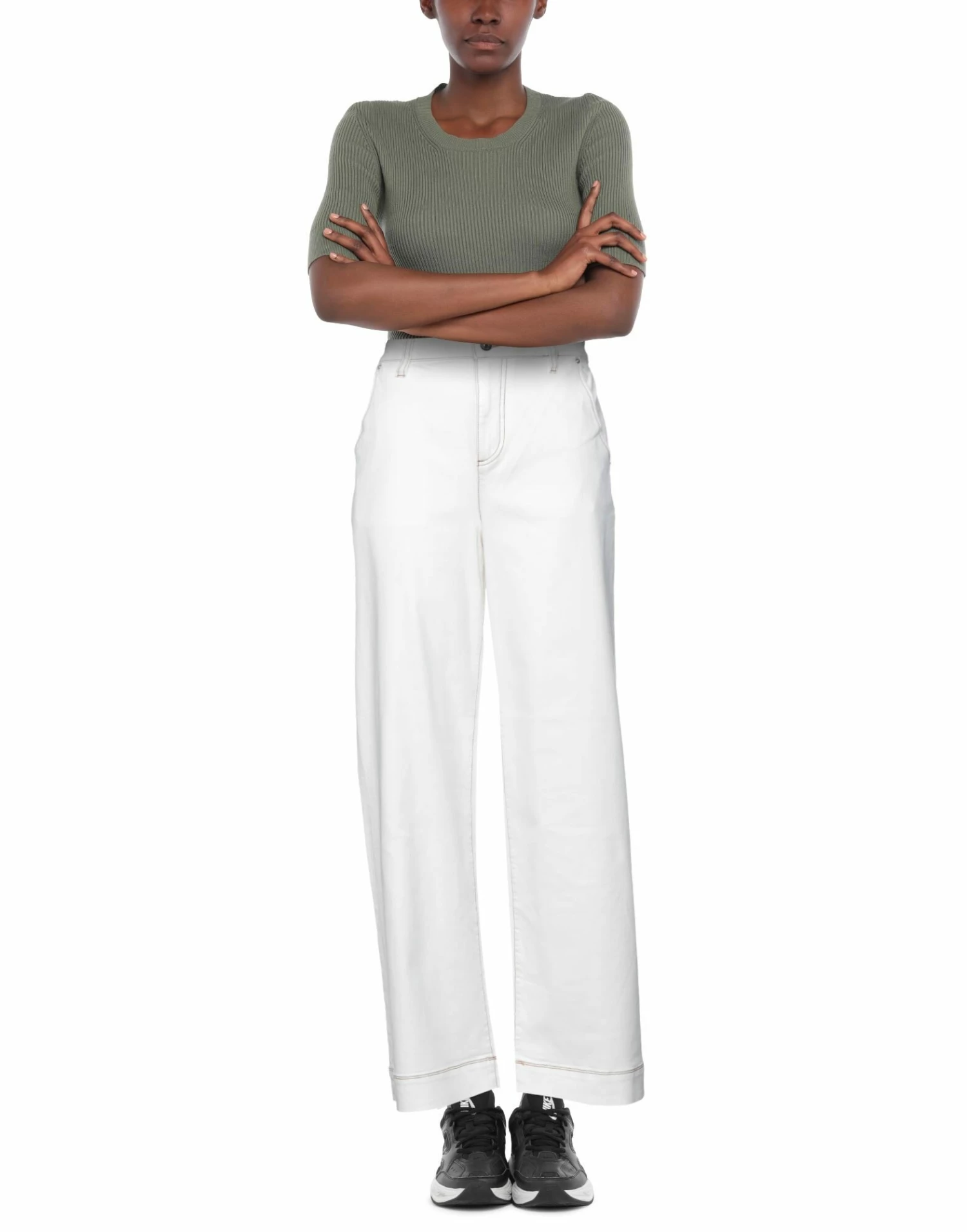 denim, brand logo, high waisted, solid color, regular fit, wide leg, button closing, zipper closure, multipockets, stretch, colored wash