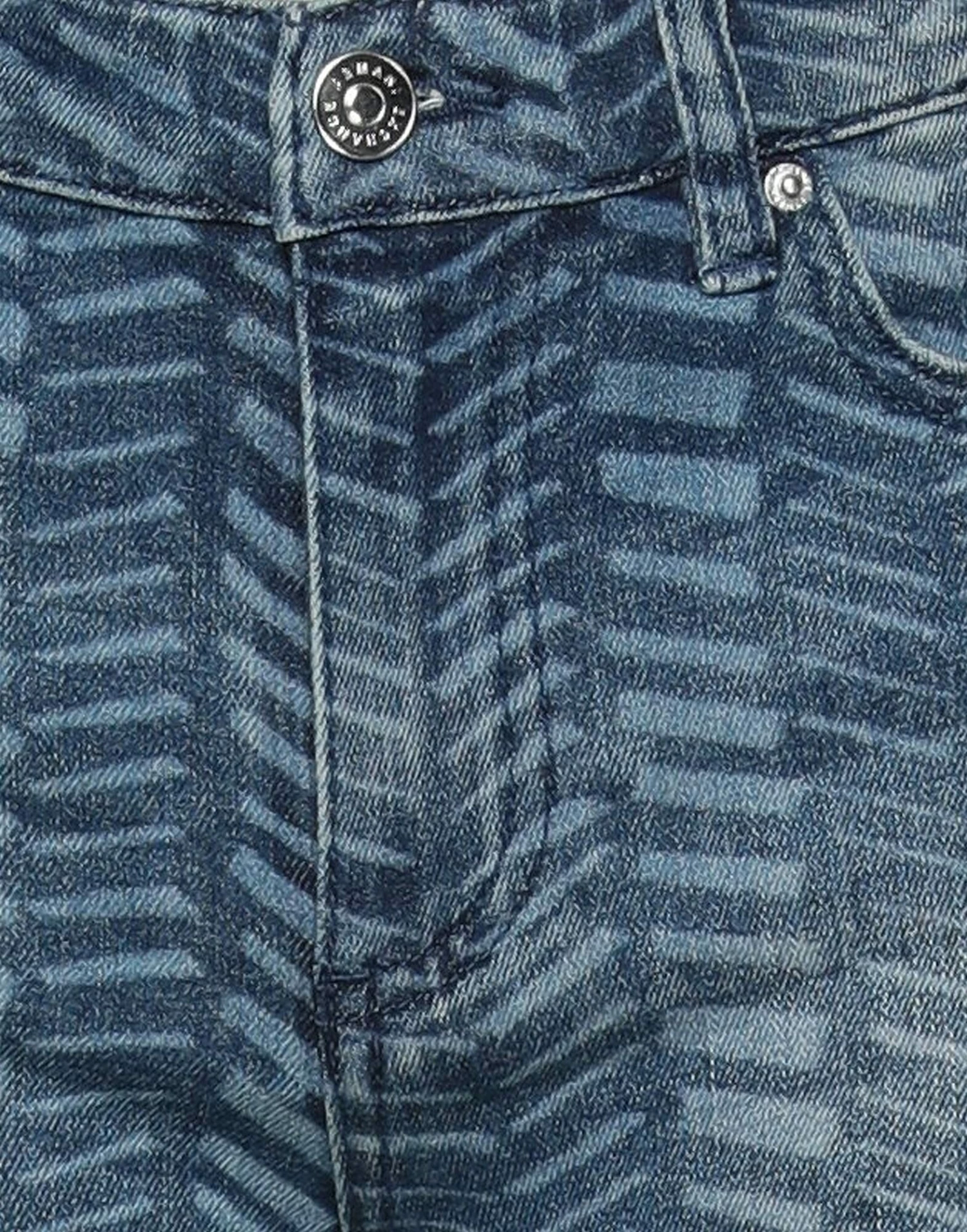 denim, brand logo, two-tone, medium wash, mid rise, regular fit, raw-cut hem, multipockets