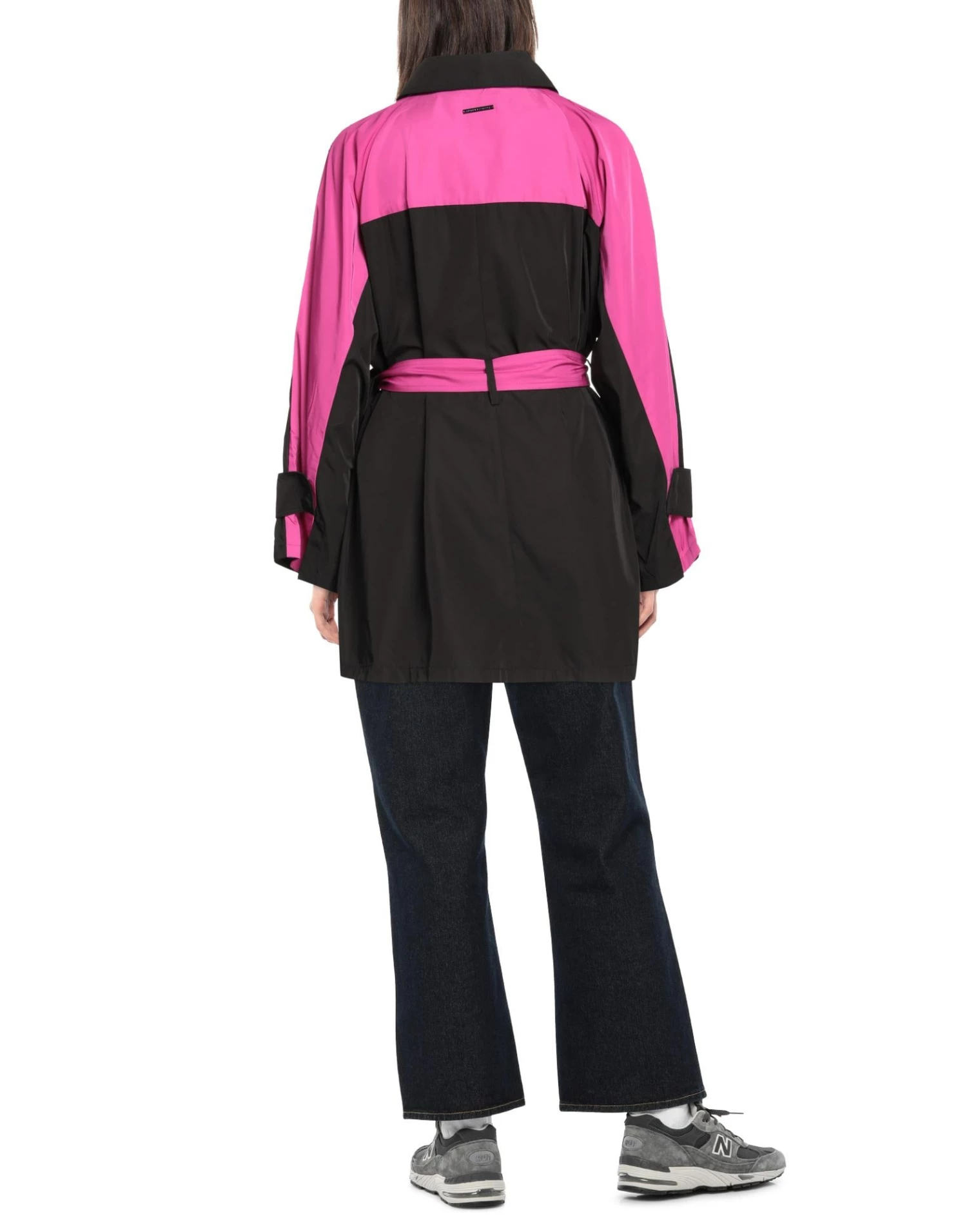 techno fabric, ruffles, belt, solid colour with appliqués, classic neckline, double-breasted, long sleeves, slit cuffs, unlined, snap buttons fastening, multipockets, pocket with zipper, trench