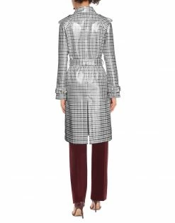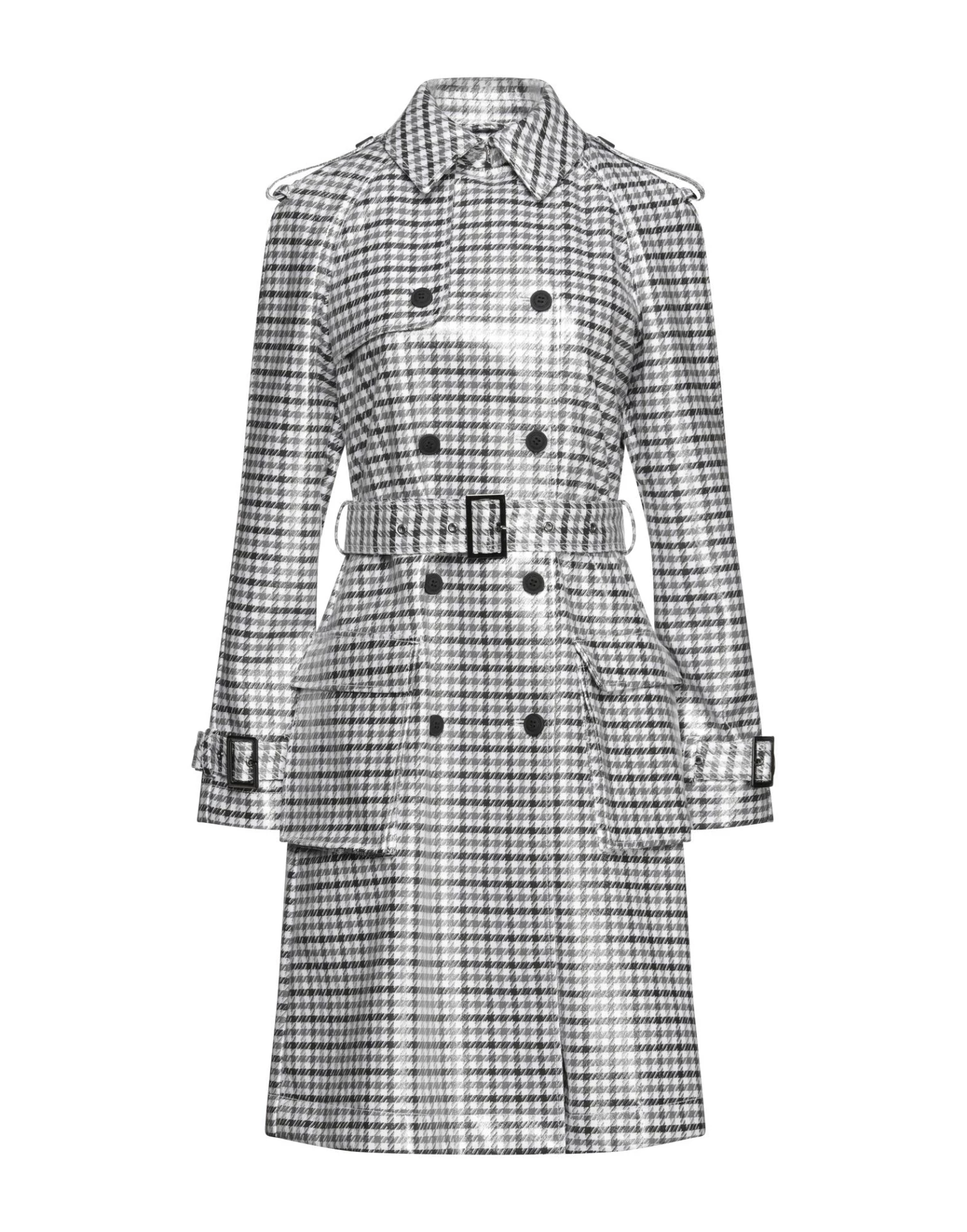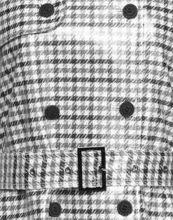 plain weave, coated effect, belt, flashes, houndstooth, classic neckline, double-breasted, long sleeves, strapped cuffs, unlined, button closing, multipockets, stretch