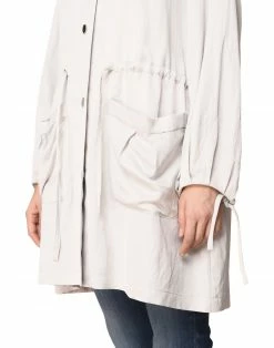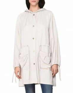 satin, laces, logo, basic solid color, single-breasted , snap button fastening, hooded collar, multipockets, long sleeves, unlined, drawstring waist, single-breasted jacket