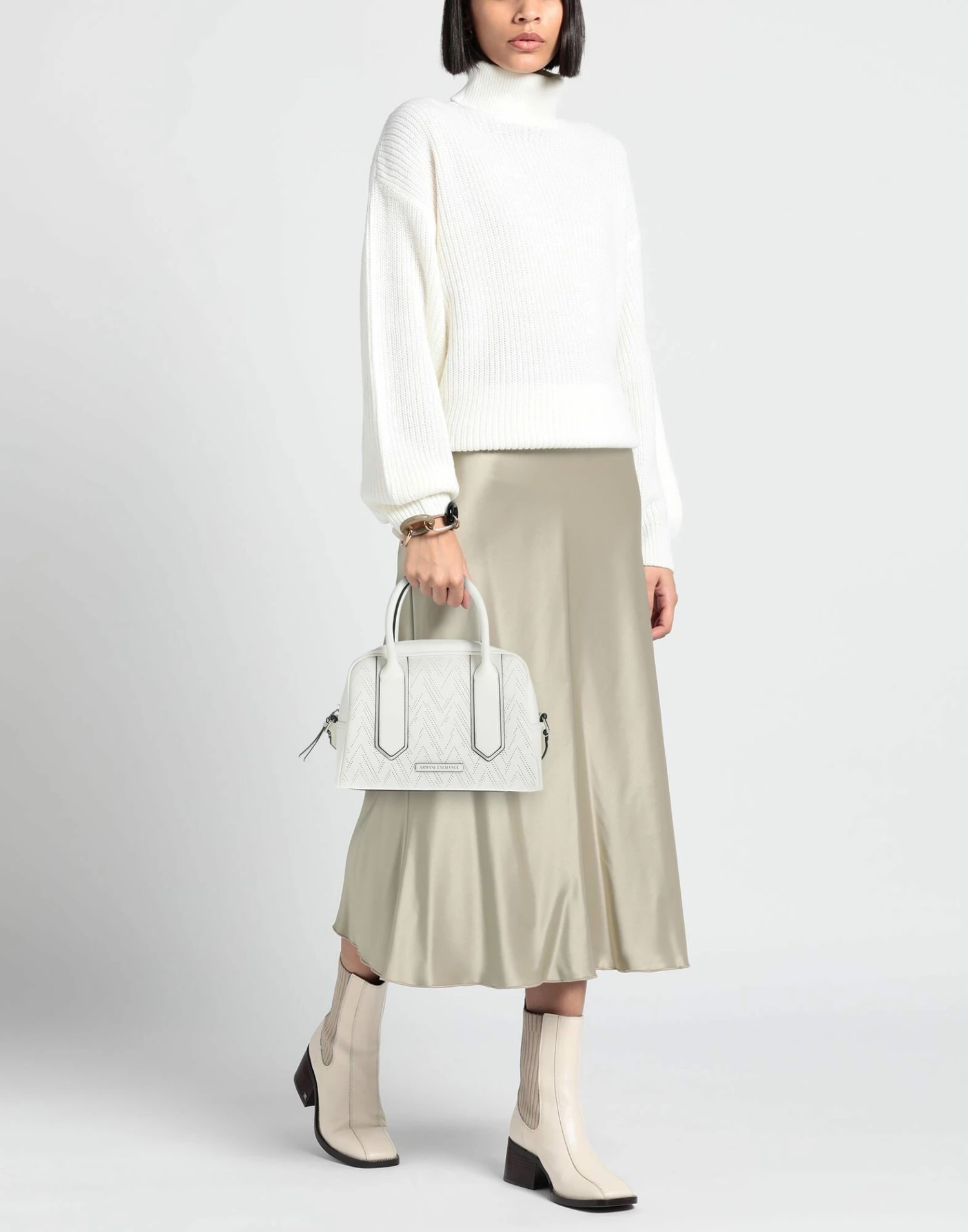 medium, coated fabric, brand logo, solid color, fully lined, zipper closure, internal pocket, double handle, adjustable shoulder strap, daytime