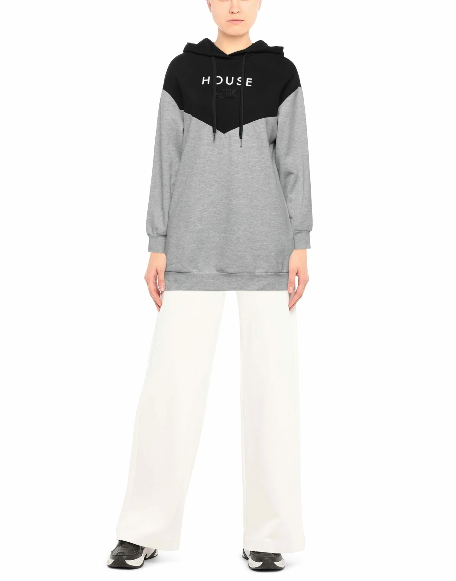 sweatshirt fleece, brand logo, two-tone, hooded collar, long sleeves, fleece lining, no pockets